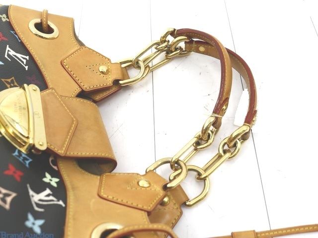 One Louis Vuitton Black Multicolor Monogram Leather Ursula Bag. Item is sold AS-IS. All available information is listed in the description and shown in the photo. Louis Vuitton Black Multicolor Monogram Leather Ursula Bag with brass hardware including handle rings and links, stud detailing, eyelets for the cinch cords, and a clasp closure, Murakami inspired multicolor monogram, leather trim, vachetta cowhide handles with links. .