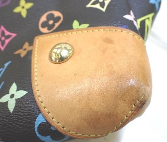 One Louis Vuitton Black Multicolor Monogram Leather Ursula Bag. Item is sold AS-IS. All available information is listed in the description and shown in the photo. Louis Vuitton Black Multicolor Monogram Leather Ursula Bag with brass hardware including handle rings and links, stud detailing, eyelets for the cinch cords, and a clasp closure, Murakami inspired multicolor monogram, leather trim, vachetta cowhide handles with links. .
