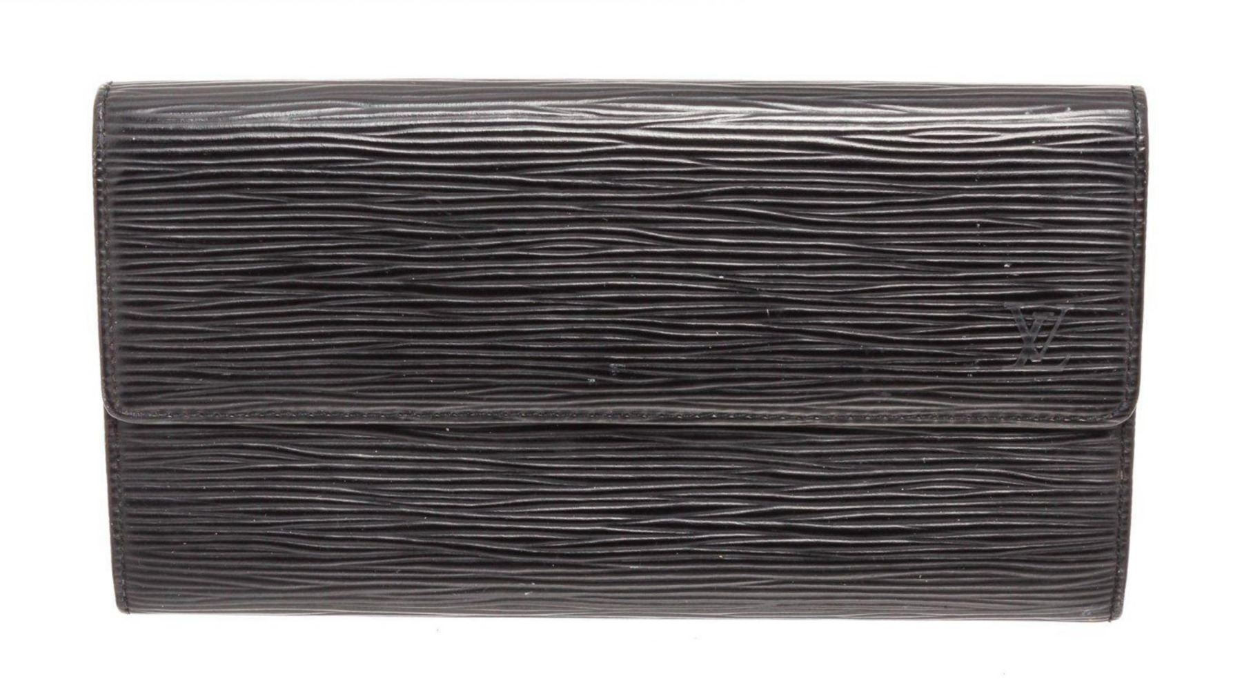 Louis Vuitton Black Sarah Wallet with gold-tone hardware, three interior compartments pockets, leather lining and snap closure. Measurements: Length: 0.75 in / 2 cm Width: 7.5 in / 19 cm 4.5 in / 11 cmCONDITION: Pre-Owned Good overall, please see photographs for detail.
