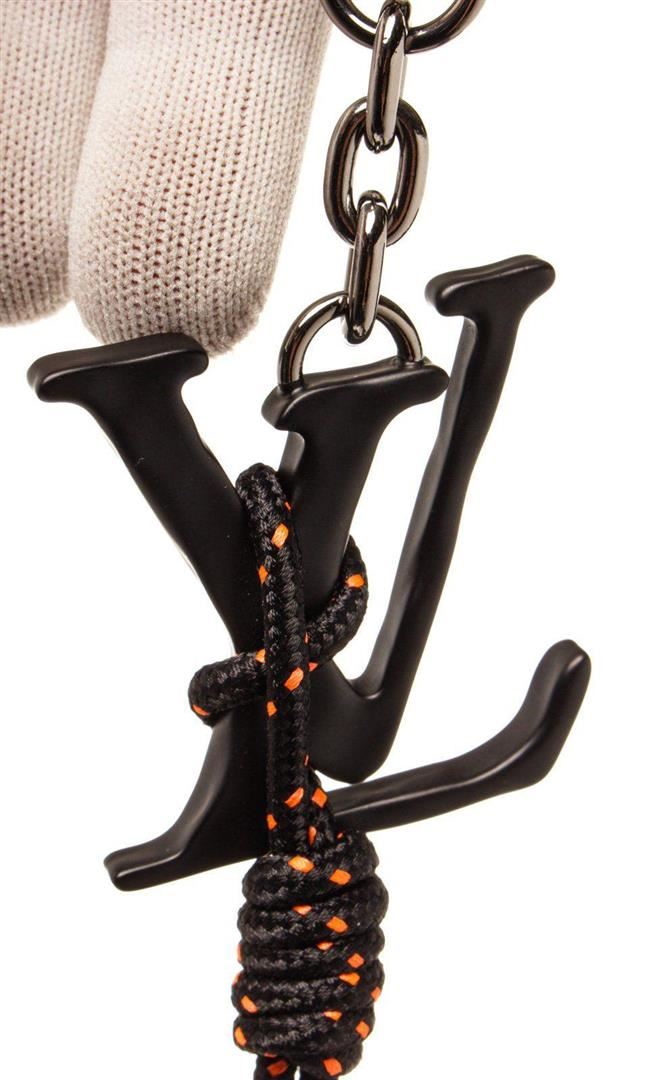 Louis Vuitton Black Shape Rope Bag Cham with leather, silver tone hardware, features brass and multi color resin embellishments and a lobster clasp closure.