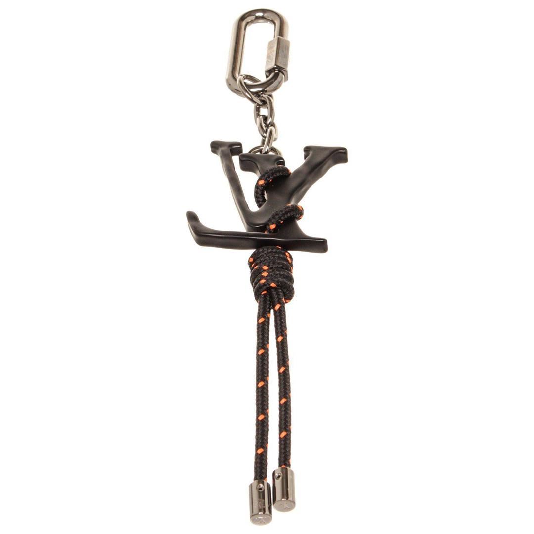 Louis Vuitton Black Shape Rope Bag Cham with leather, silver tone hardware, features brass and multi color resin embellishments and a lobster clasp closure.