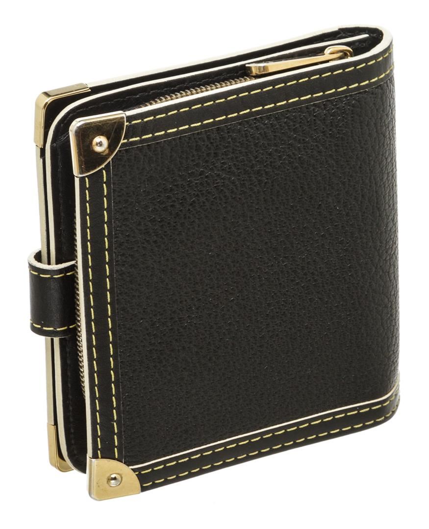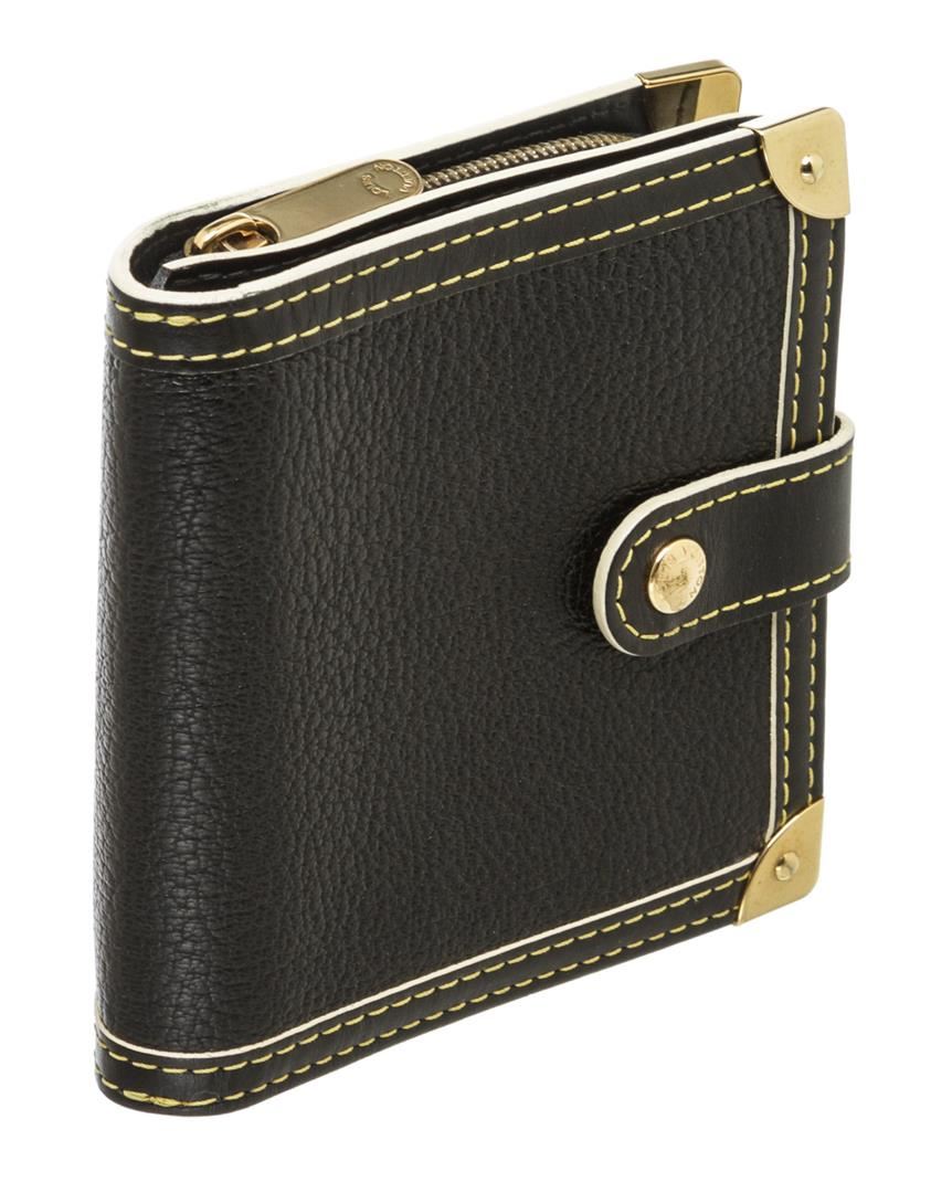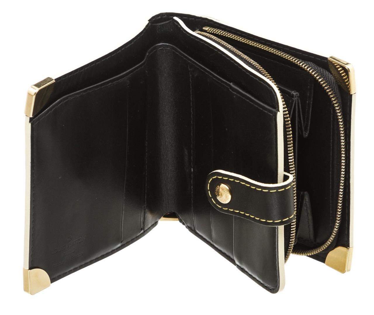 One Louis Vuitton Black Suhali Leather Compact Zippy Wallet. Louis Vuitton black Suhali leather Compact Zippy wallet with gold-tone hardware, black leather lining, five card slots, and zipper pouch with two compartments. MKR