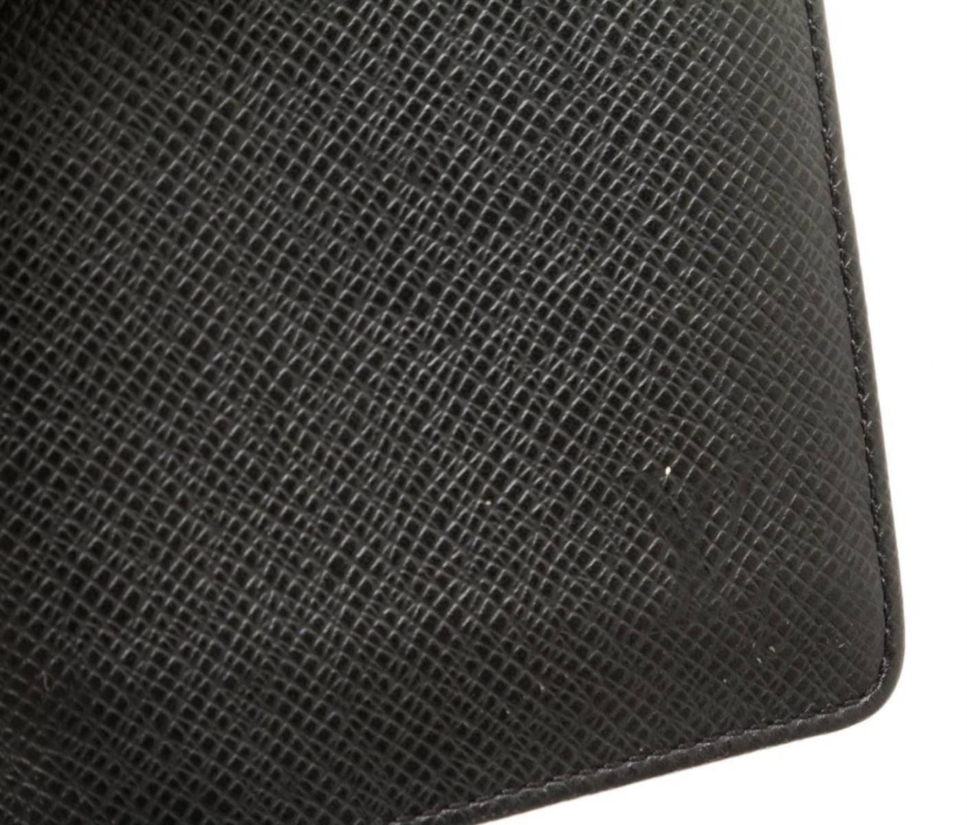 One Louis Vuitton Black Taïga Brazza Wallet. Men's Black Taïga leather Louis Vuitton Brazza wallet with embossed logo at front, tonal leather interior, dual bill slots, interior card slots and flap closure at front. MKR