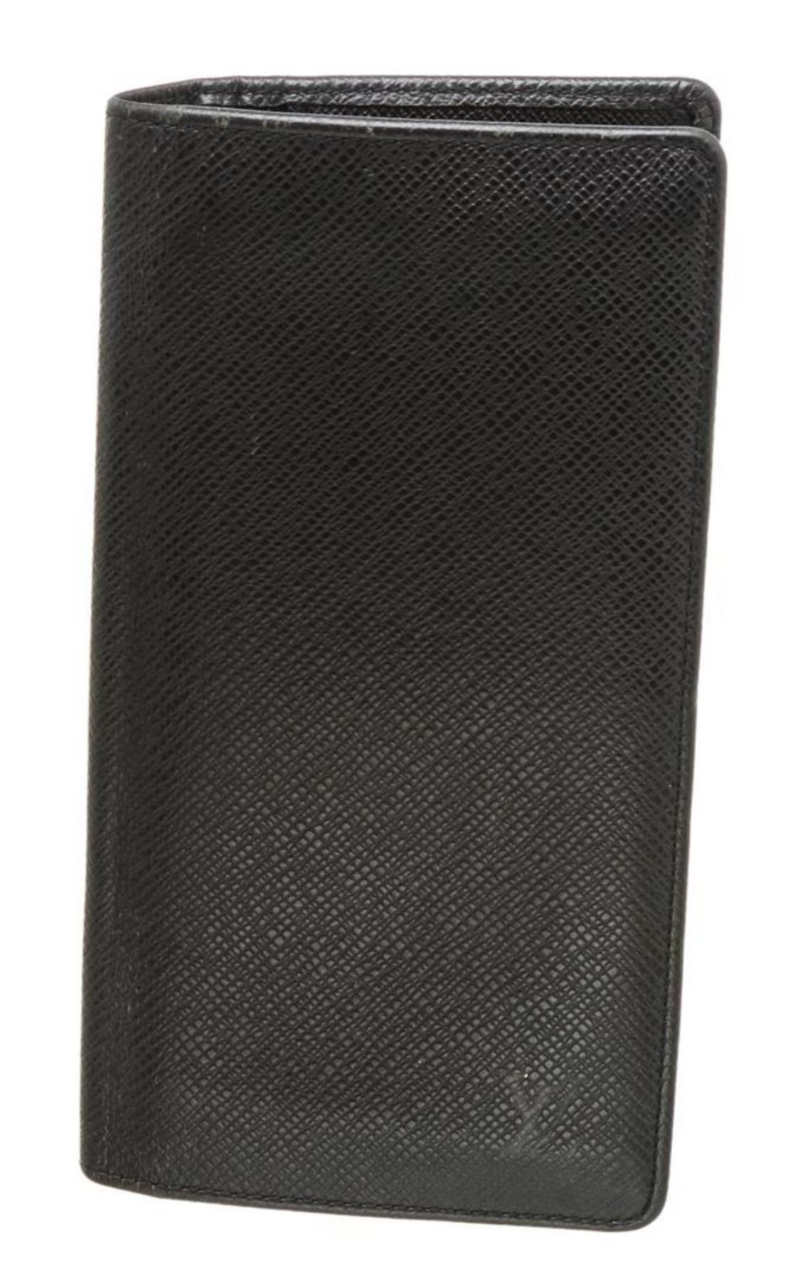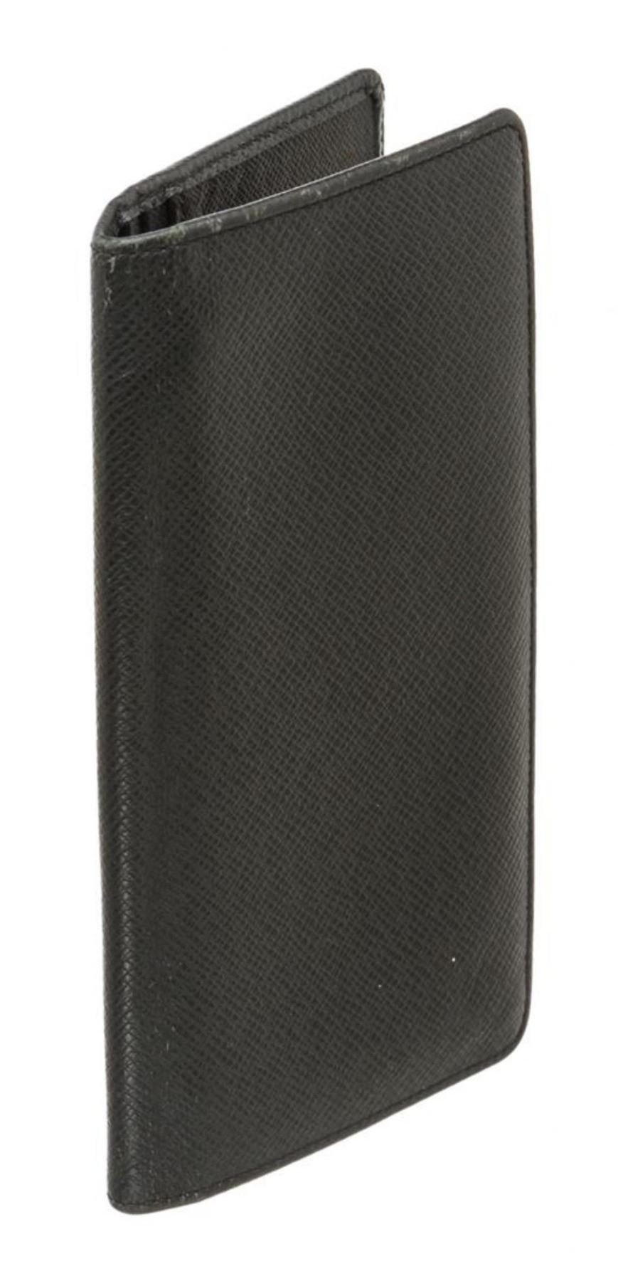 One Louis Vuitton Black Taïga Brazza Wallet. Men's Black Taïga leather Louis Vuitton Brazza wallet with embossed logo at front, tonal leather interior, dual bill slots, interior card slots and flap closure at front. MKR
