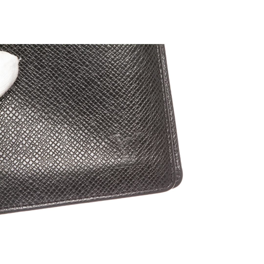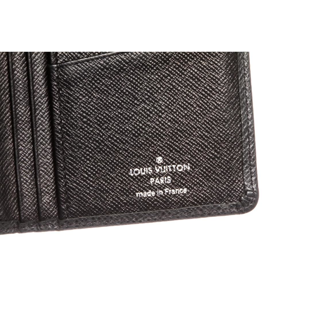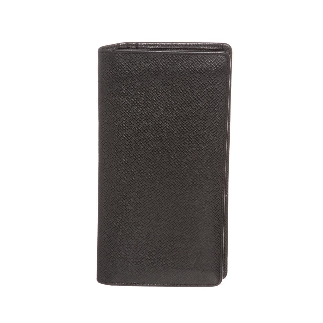 Taiga leather Louis Vuitton Brazza wallet with silver-tone hardware, 12 card slots, single zip pouch, three bill compartments and fold-over closure.