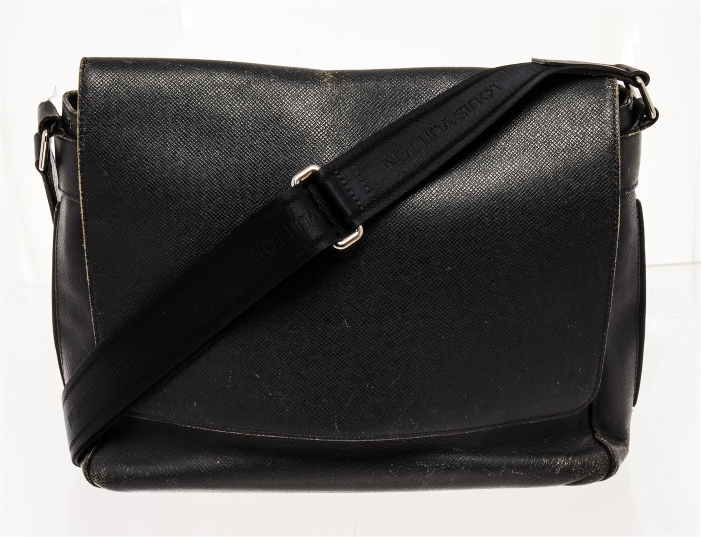 Louis Vuitton Black Taiga Leather Roman MM Messenger Bag. All available information is listed in the description and shown in the photos. Louis Vuitton Black Taiga Leather Roman MM Messenger Bag with the roman features a leather body, silver-tone hardware, a flat leather strap, a front flap with magnetic snap button closure, and interior pockets. 9.8" L x 14.6" W x 3.1" D, / 24.89 x 37.08 x 7.87 Cm
