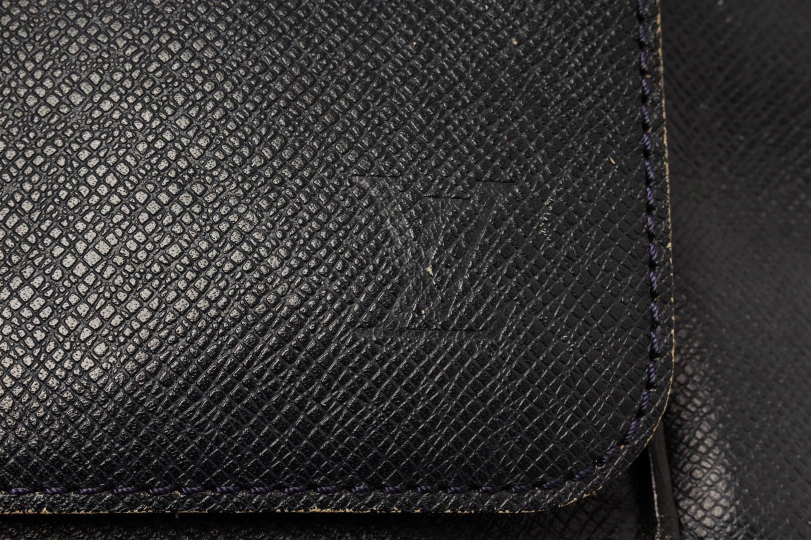 Louis Vuitton Black Taiga Leather Roman MM Messenger Bag. All available information is listed in the description and shown in the photos. Louis Vuitton Black Taiga Leather Roman MM Messenger Bag with the roman features a leather body, silver-tone hardware, a flat leather strap, a front flap with magnetic snap button closure, and interior pockets. 9.8" L x 14.6" W x 3.1" D, / 24.89 x 37.08 x 7.87 Cm