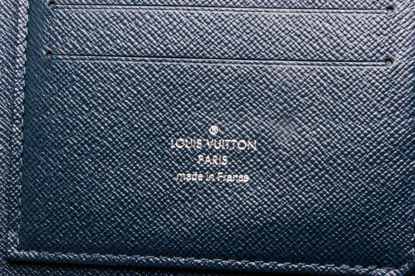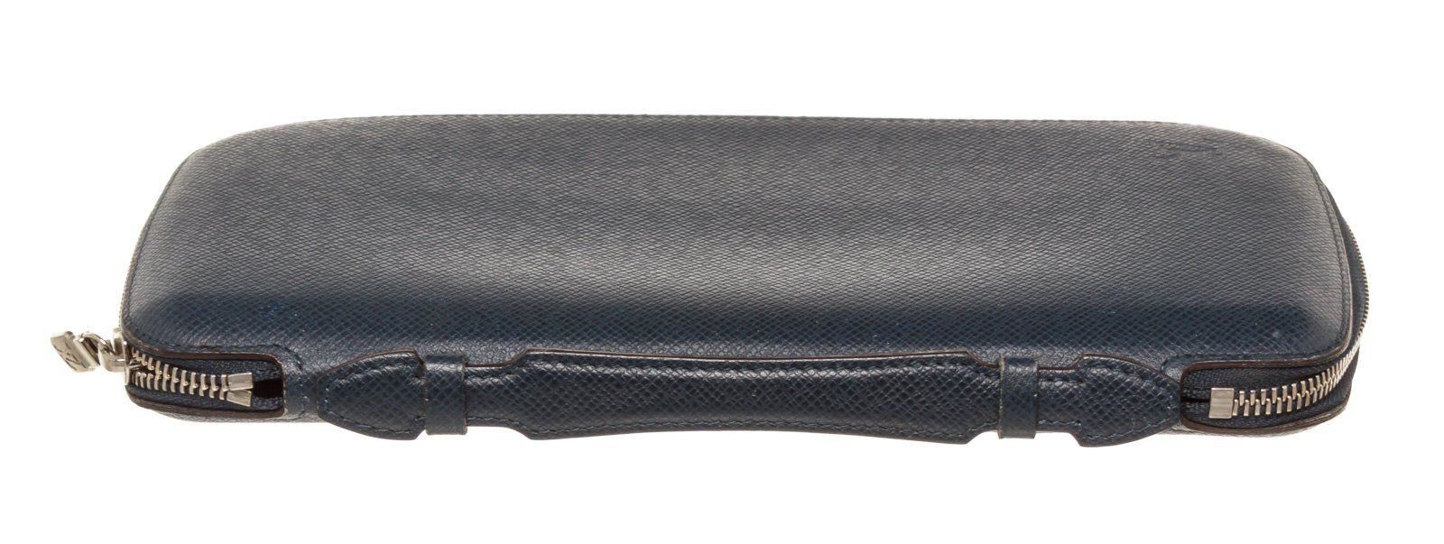 Louis Vuitton Blue Atoll Organizer Wallet with material leather, gold-tone hardware, trim tan vachetta, interior cardholder pocket and zipper closure.