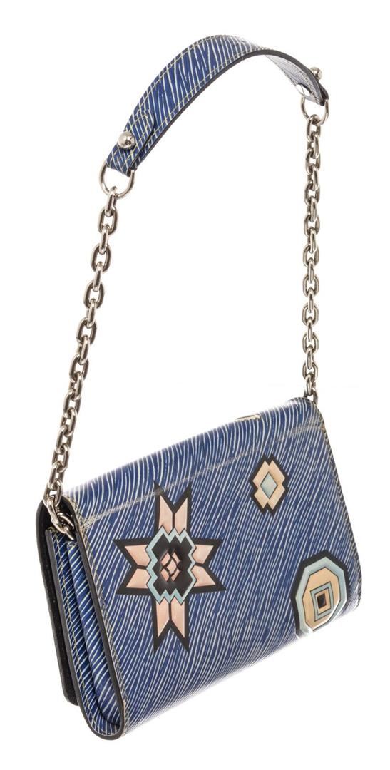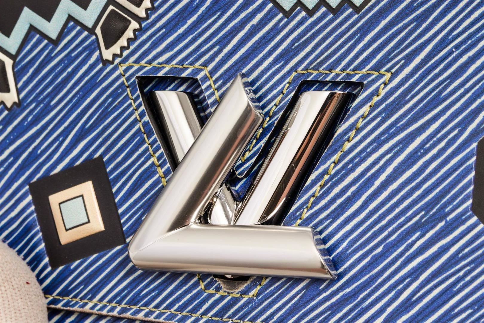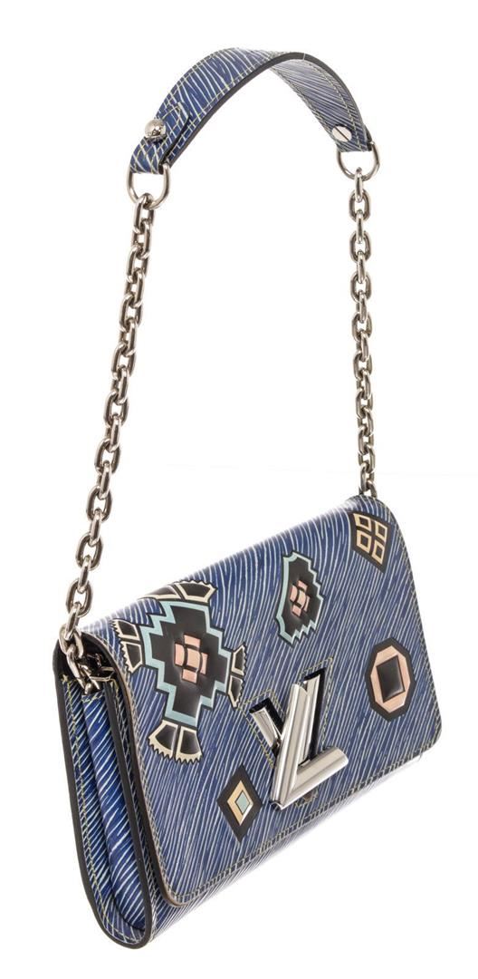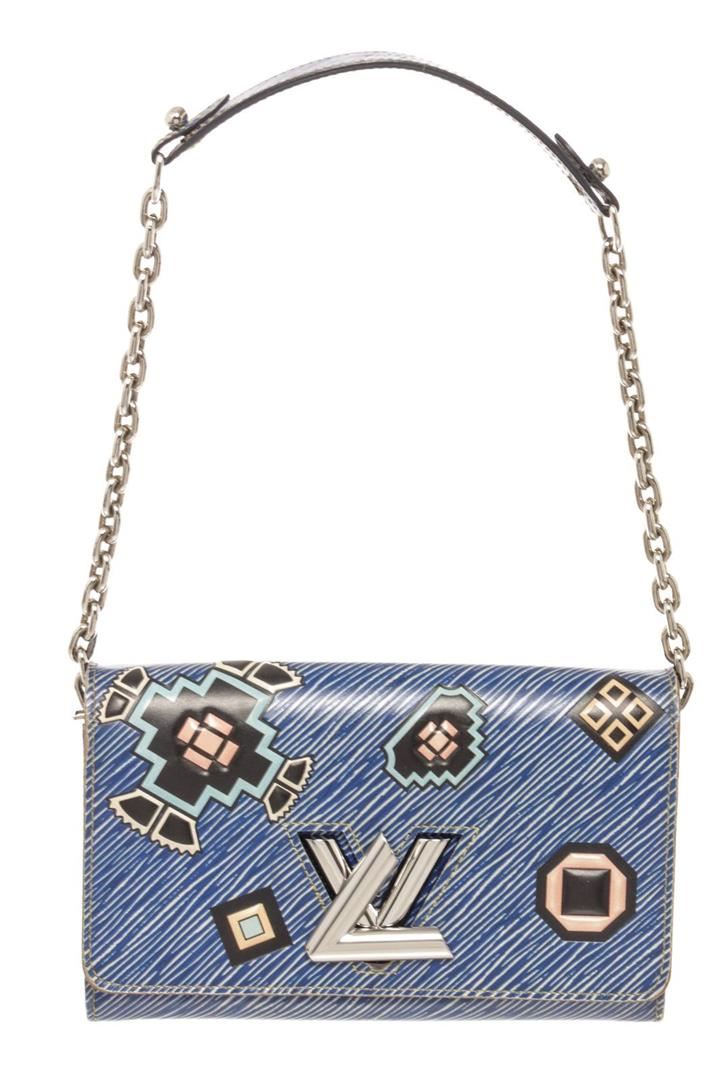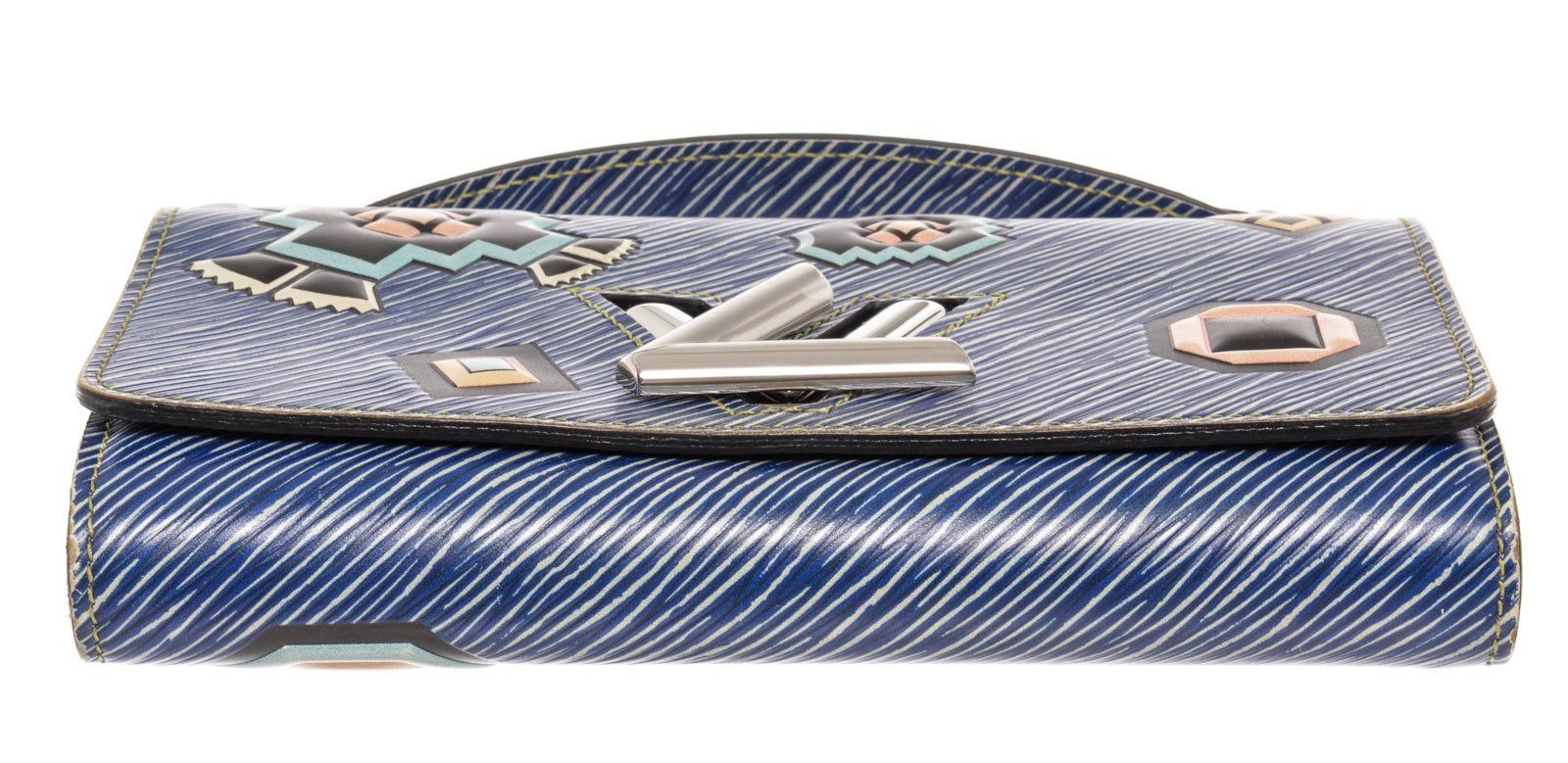 The Louis Vuitton Epi Azteque Twist Crossbody Bag features a new look on Louis Vuitton's classic Epi leather. The leather is accented with motifs that are reminiscent of indigenous Central American cultures and silver-tone hardware. The bag is lined in black with 6 credit card slots, a slip pocket and a zipper pocket. It also features LV signature twist lock closure.