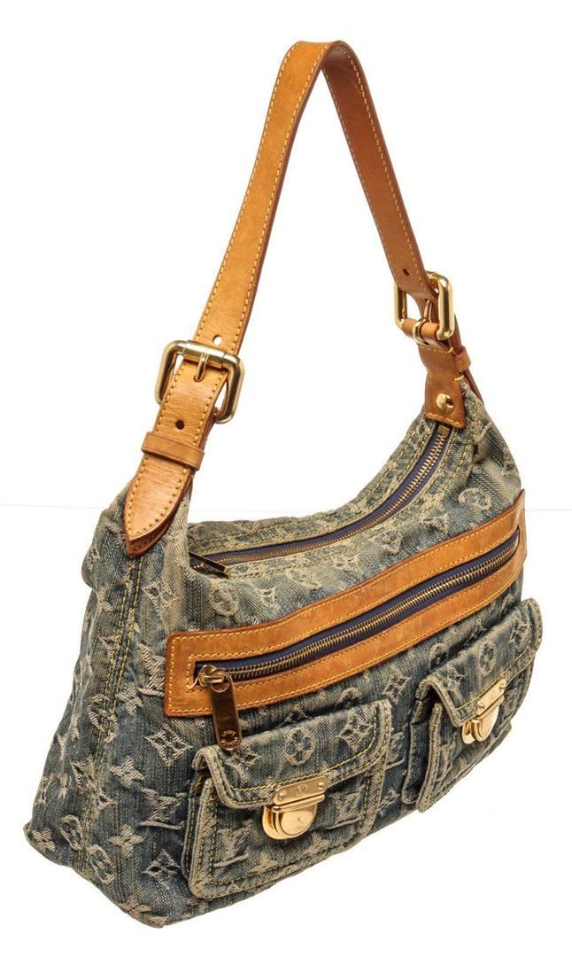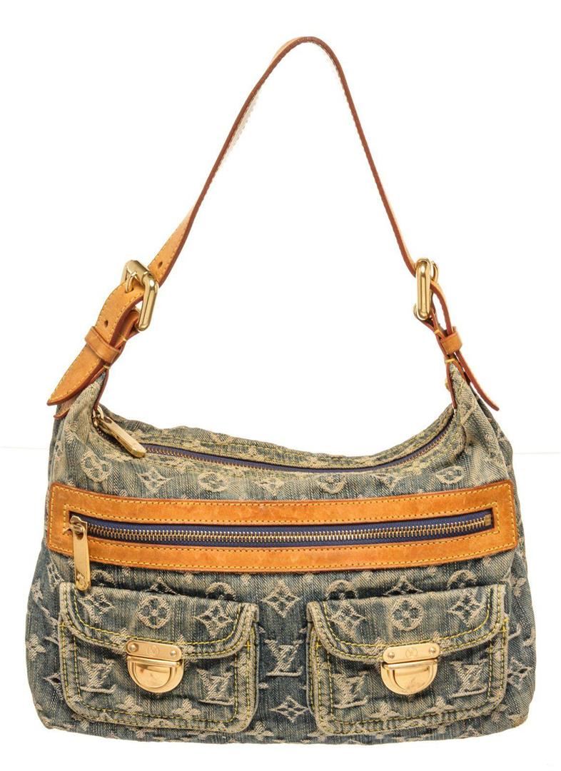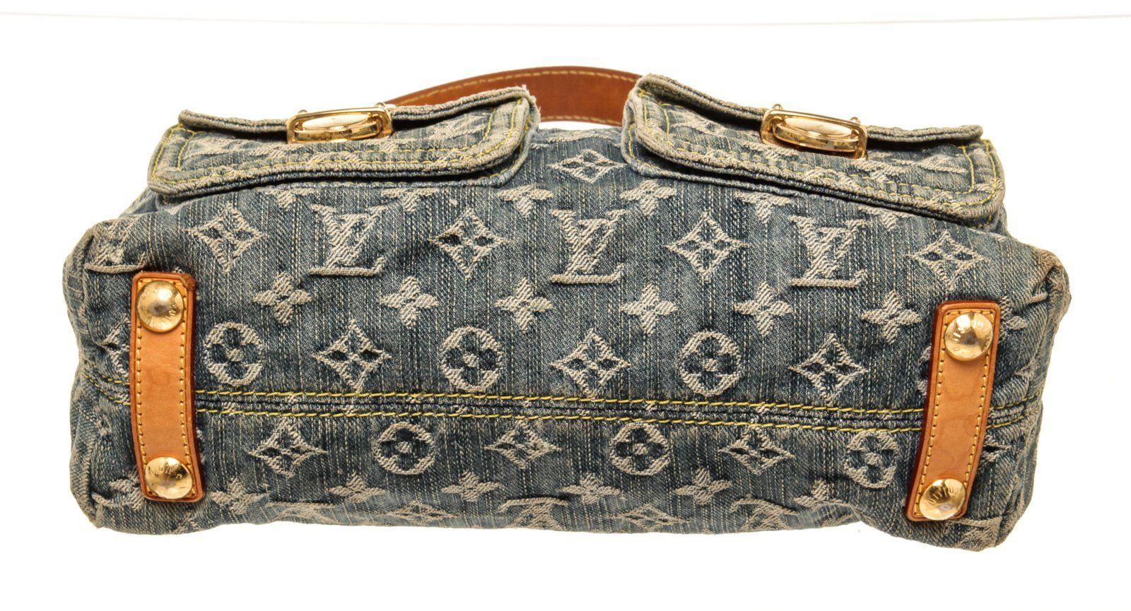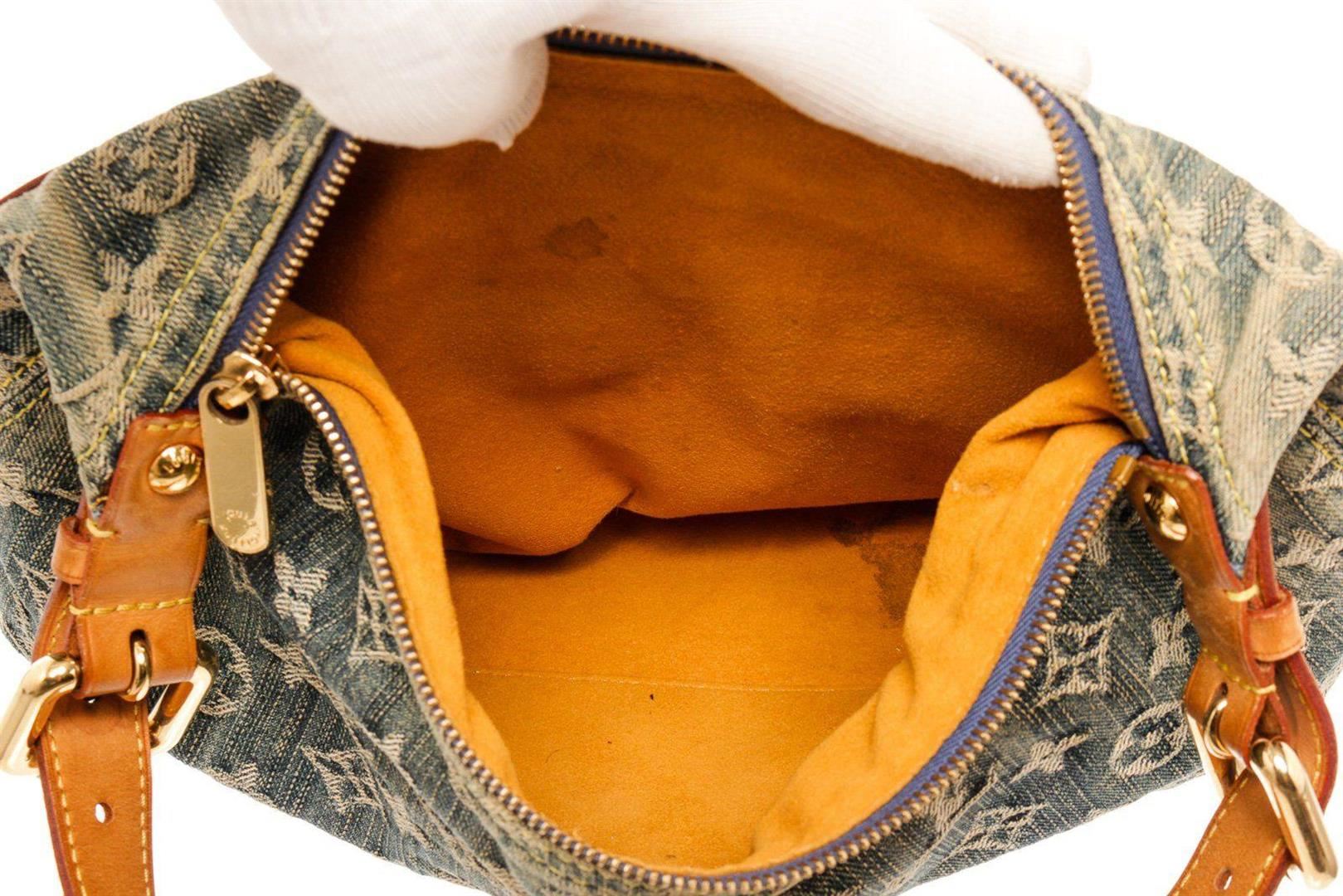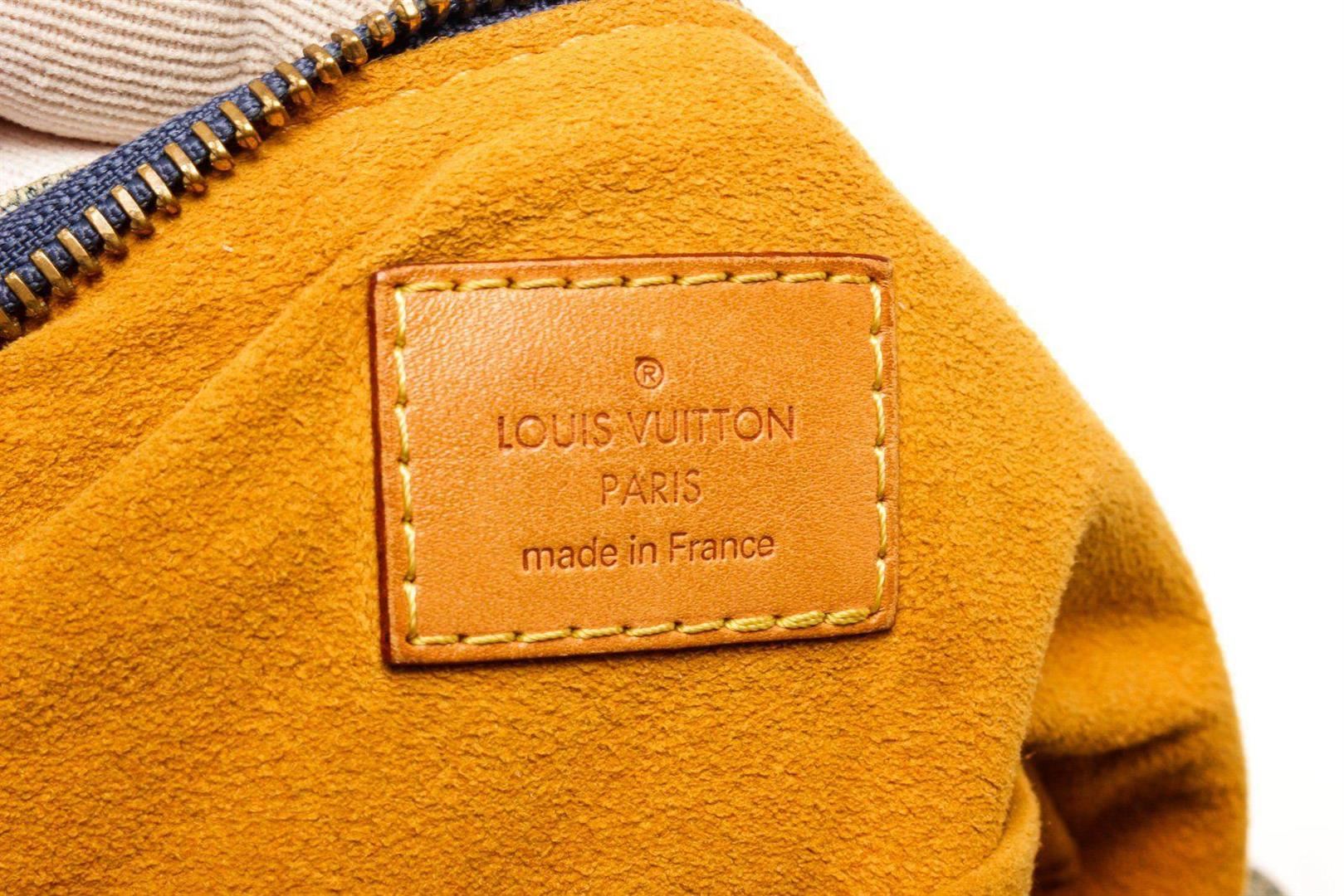 Louis Vuitton Blue Denim Monogram Neo Speedy Shoulder Bag with monogram canvas, brass hardware, tan vachetta leather trim, dual rolled top handles, three exterior pockets; one with zip closure, mimosa Alcantara lining, single slip pocket at interior wall and zip closure at top.