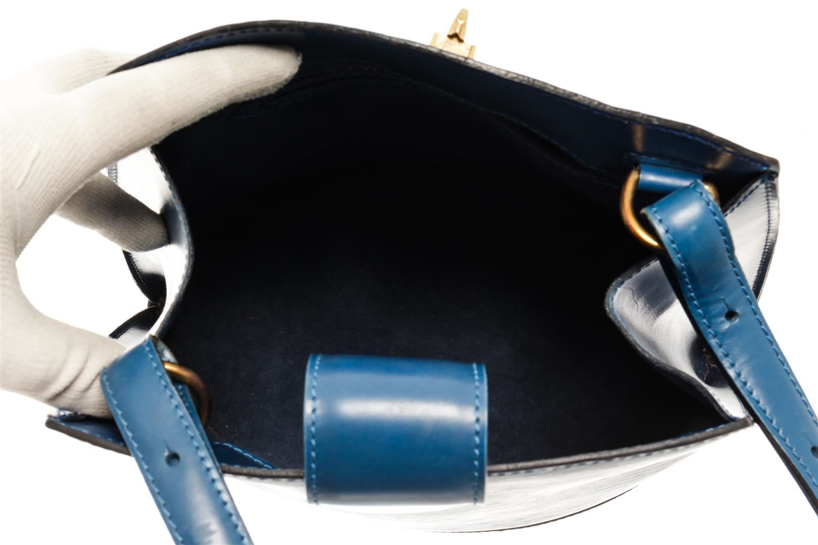 One Louis Vuitton Blue Epi Cluny. Item is sold AS-IS. All available information is listed in the description and shown in the photo. Louis Vuitton Blue Epi Cluny with adjustable shoulder strap, suede lining, interior pocket, gold tone hardware and turn lock closure
