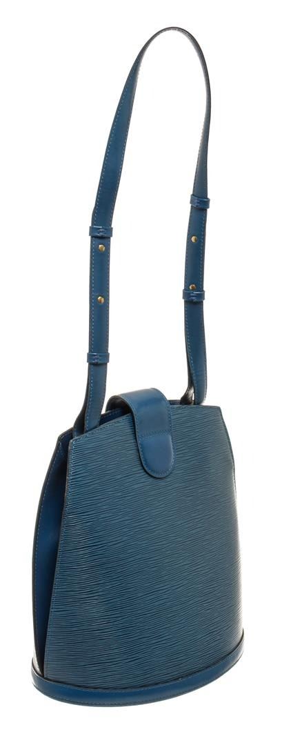 One Louis Vuitton Blue Epi Cluny. Item is sold AS-IS. All available information is listed in the description and shown in the photo. Louis Vuitton Blue Epi Cluny with adjustable shoulder strap, suede lining, interior pocket, gold tone hardware and turn lock closure