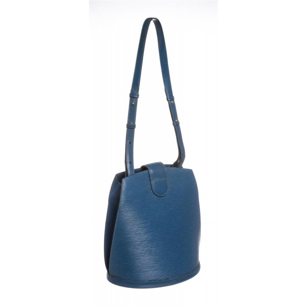 Epi leather Louis Vuitton Cluny bag with brass hardware, adjustable shoulder strap, embossed logo at front, Alcantara lining, single pocket at interior wall and turn-lock closure at front flap. Item is pre-owned.