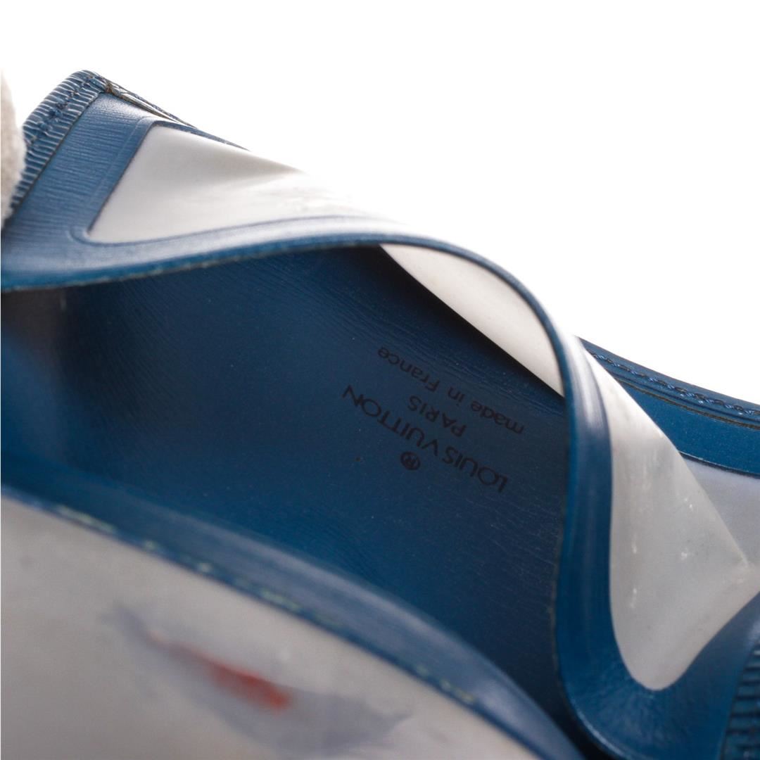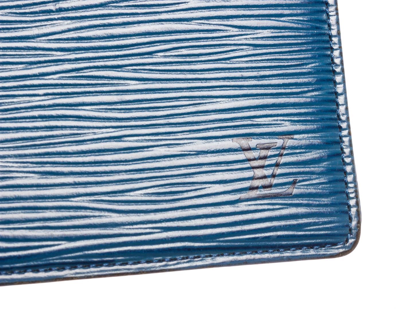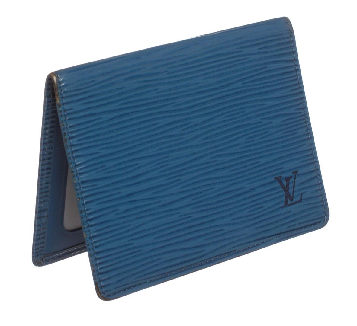 Blue Epi leather Louis Vuitton ID holder with tonal leather interior, dual ID slots at interior walls and fold-over flap closure.