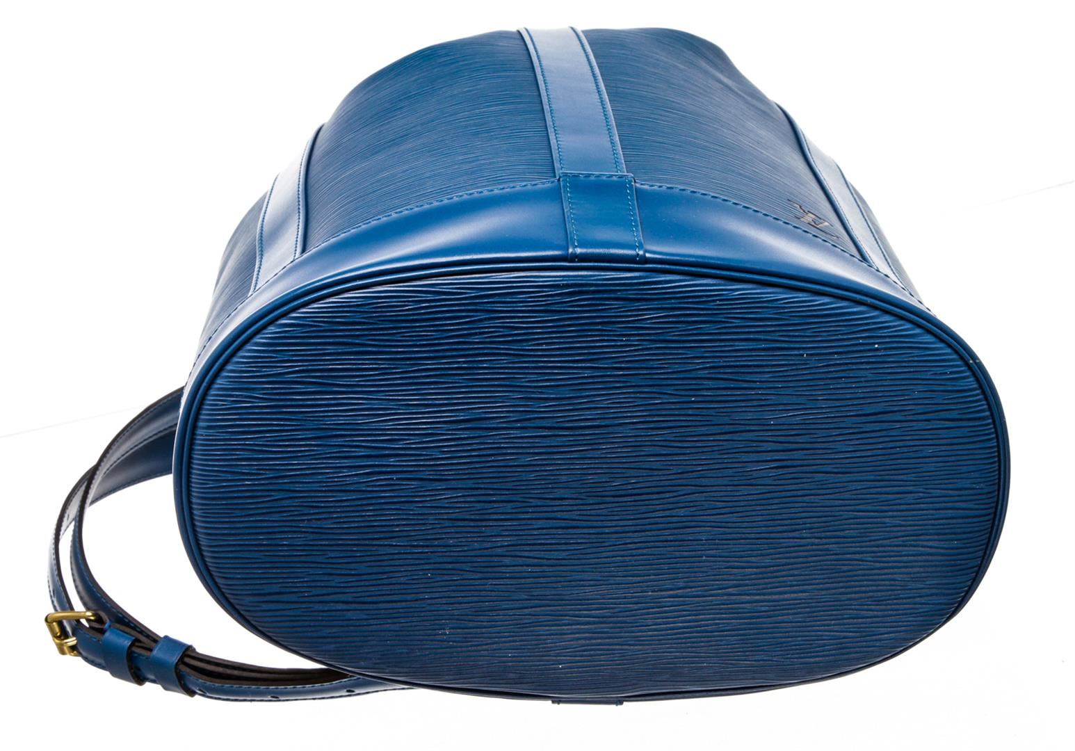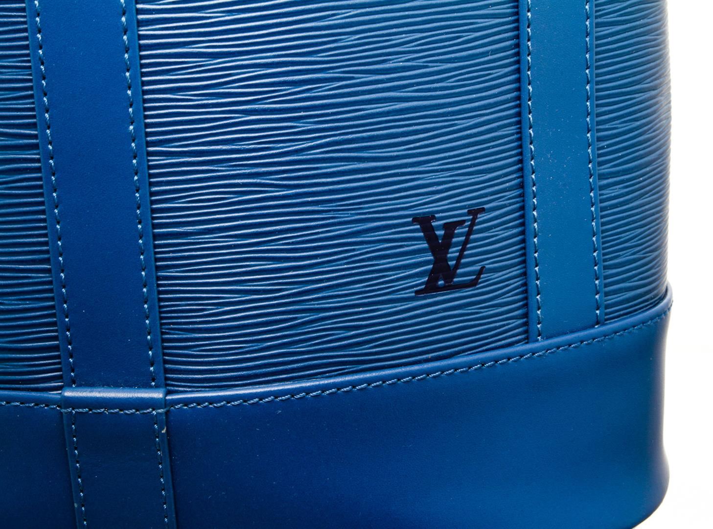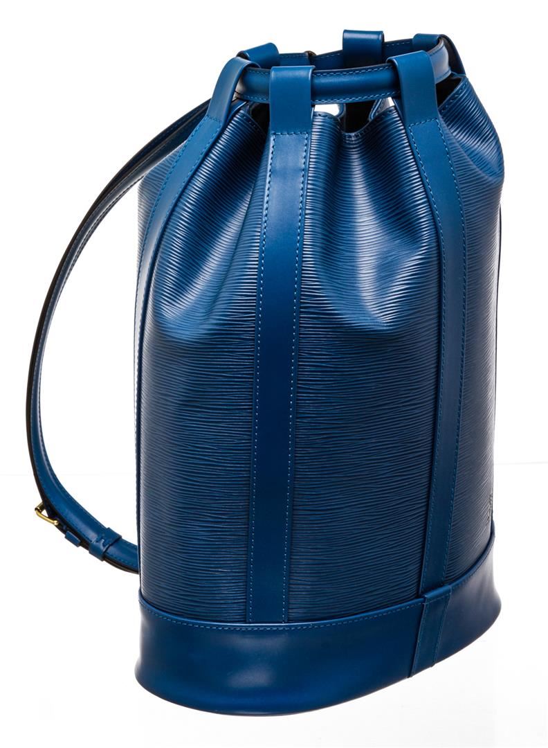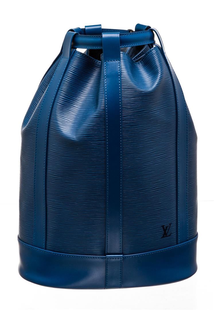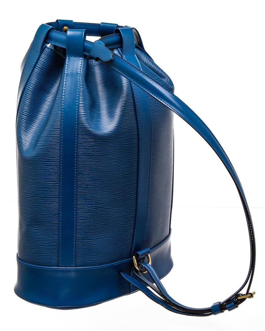 Epi leather Louis Vuitton Randonne Backpack GM with brass hardware, black Alcantara lining, single zip pocket at interior wall and drawstring closure at top.