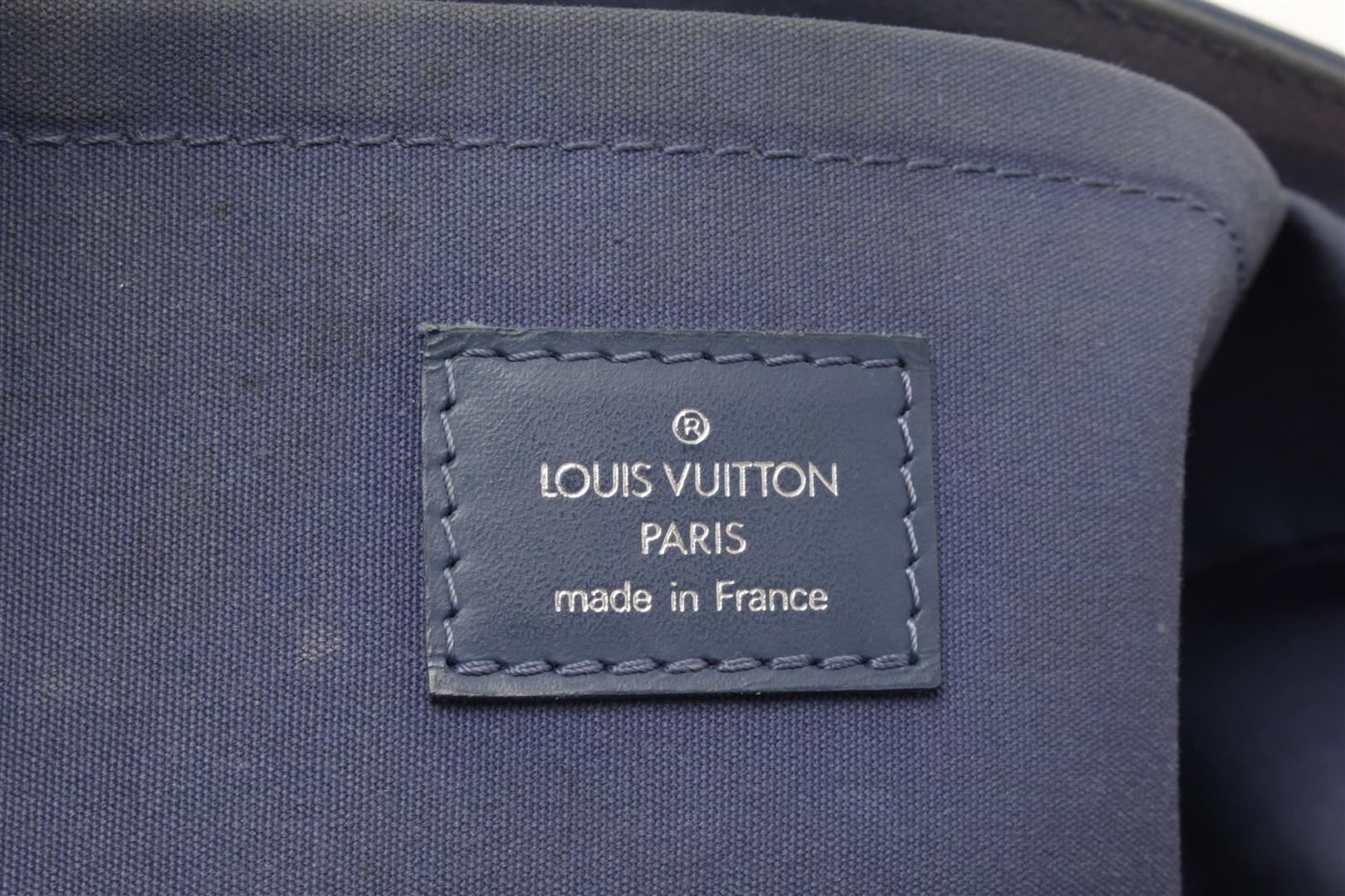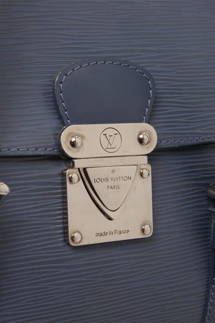 One Louis Vuitton Blue Epi Leather Segur MM Shoulder Bag. Item is sold AS-IS. All available information is listed in the description and shown in the photo. Louis Vuitton Blue Epi Leather Segur MM Shoulder Bag with silver-tone hardware, epi leather in deep earth blue, smooth and tall leather strap top handles with silver buckles and a cross-over flap with a silver press-lock. Length: 15.00 in, Width: 5.00 in, Height: 10.00 in / 38.1 x 12.7 x 25.4 cm