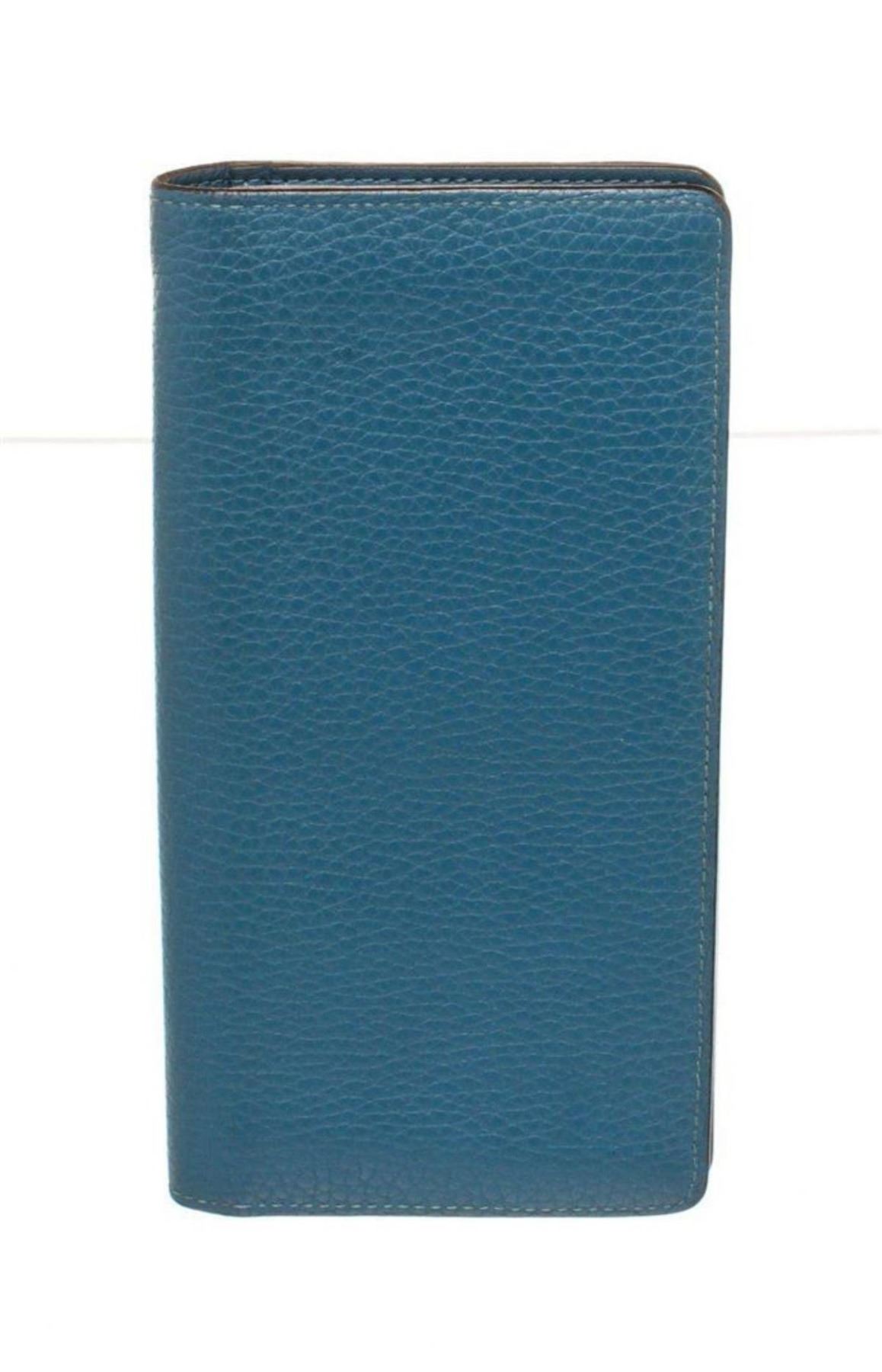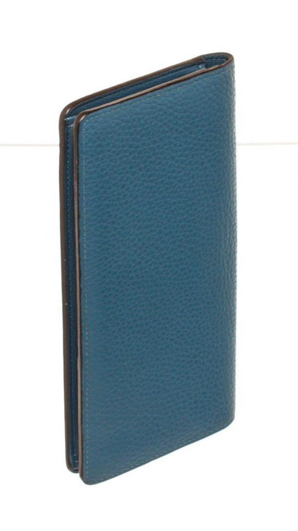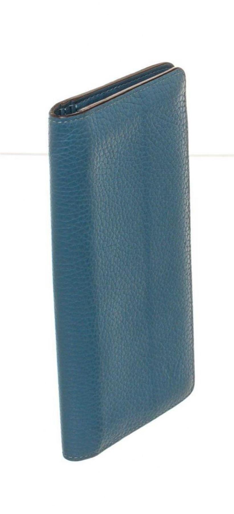 Louis Vuitton Blue Leather Brazza Wallet with silver-tone hardware, black leather lining, three interior compartments; one with zip closure, thirteen card slots, three bill compartments and bifold closure at front.