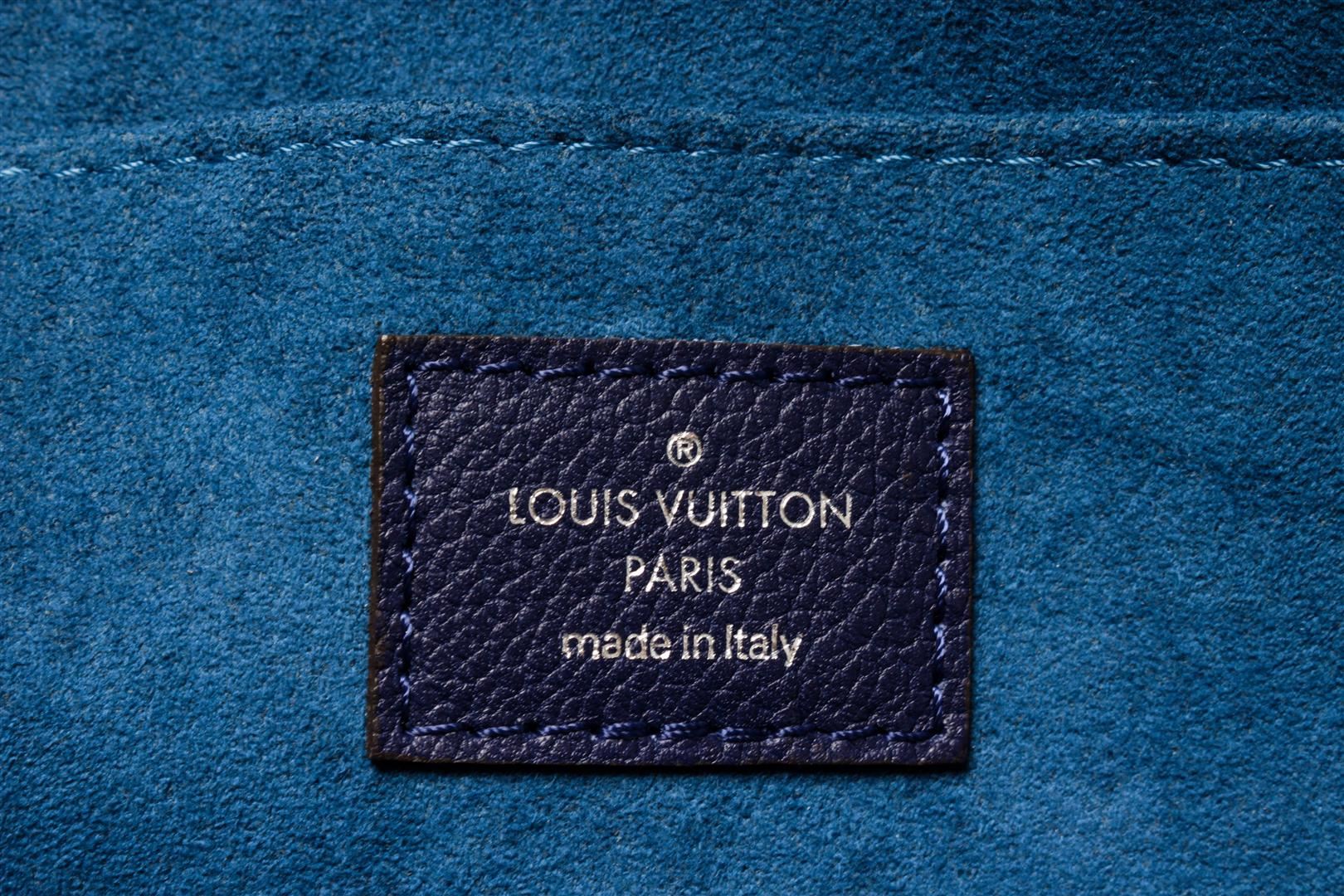 One Louis Vuitton Blue Leather Pochette Jules PM. Item is sold AS-IS. All available information is listed in the description and shown in the photo. Louis Vuitton blue leather Pochette Jules GM with embossed logo on the exterior, blue suede lining, silver-toned hardware, zipper closure, and one compartment with one slip pocket.