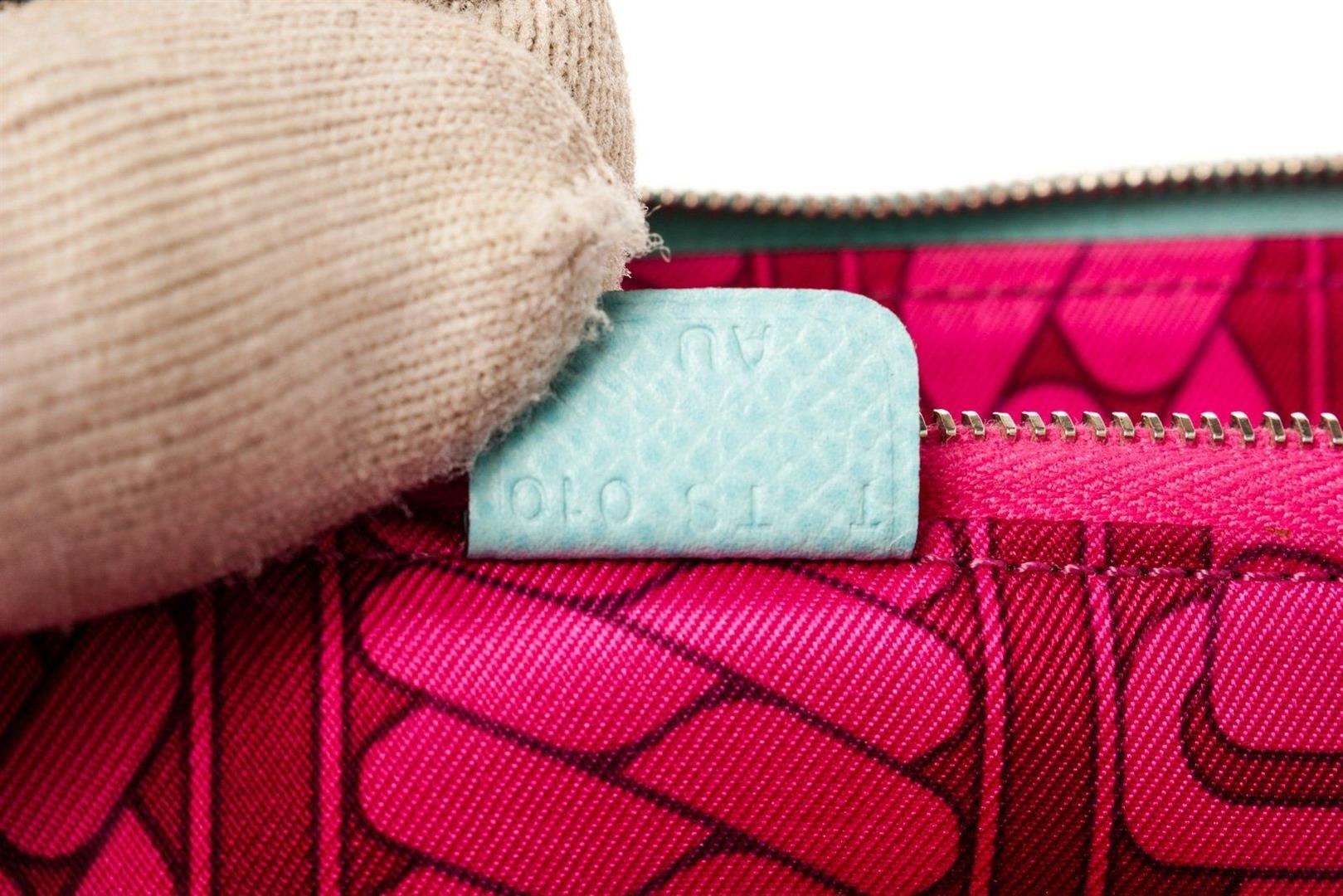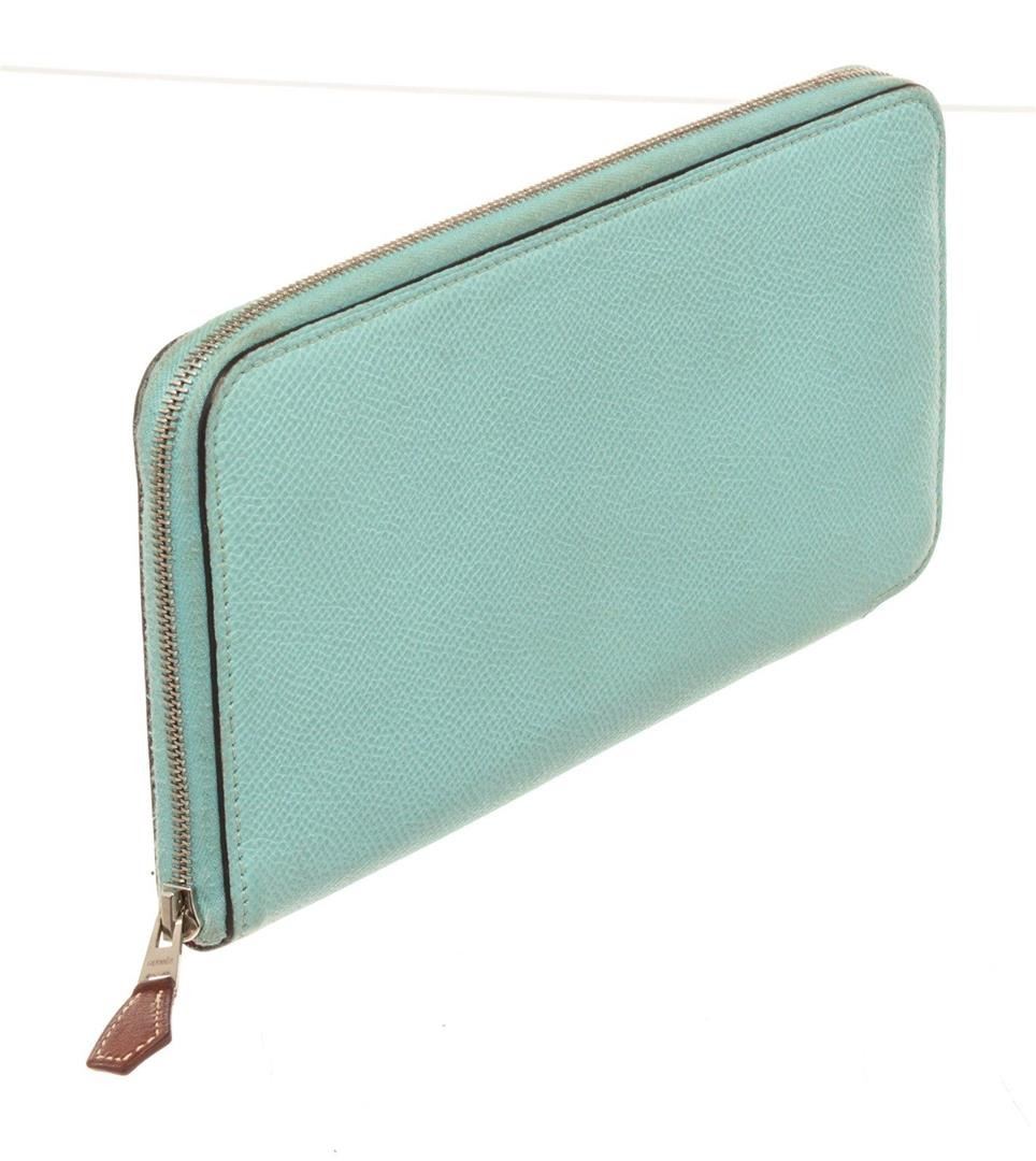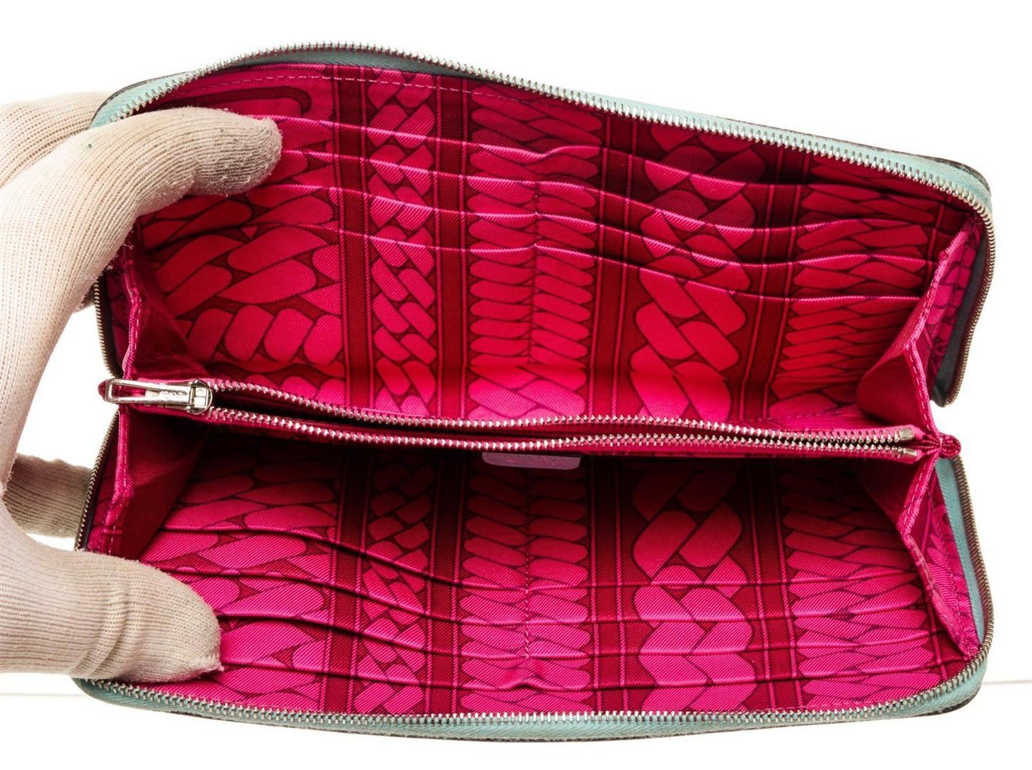 Louis Vuitton Blue Leather Silk In Zippy Wallet with leather, gold-tone hardware, trim tan vachetta leather, interior three compartments pockets and zipper closure.