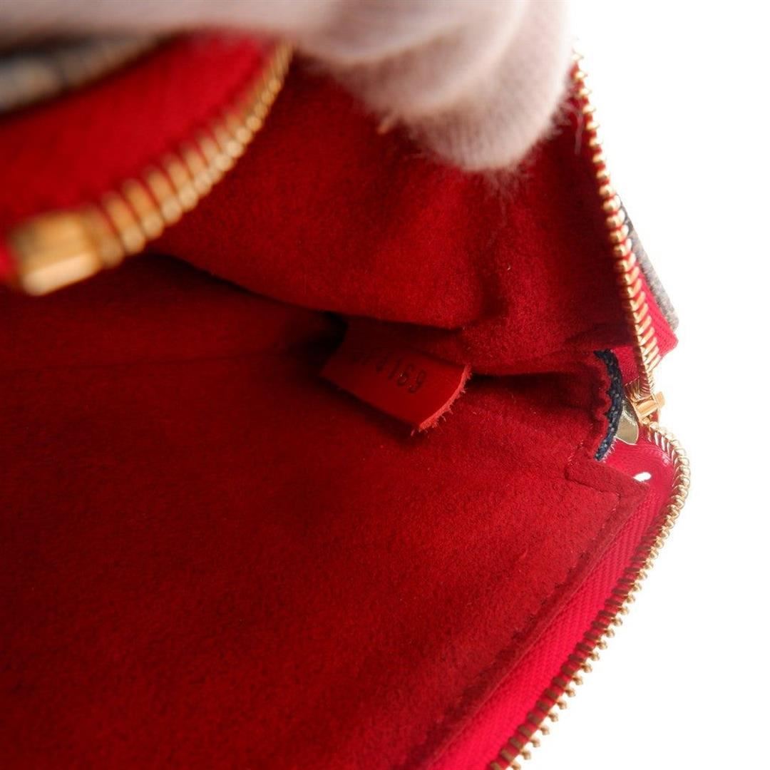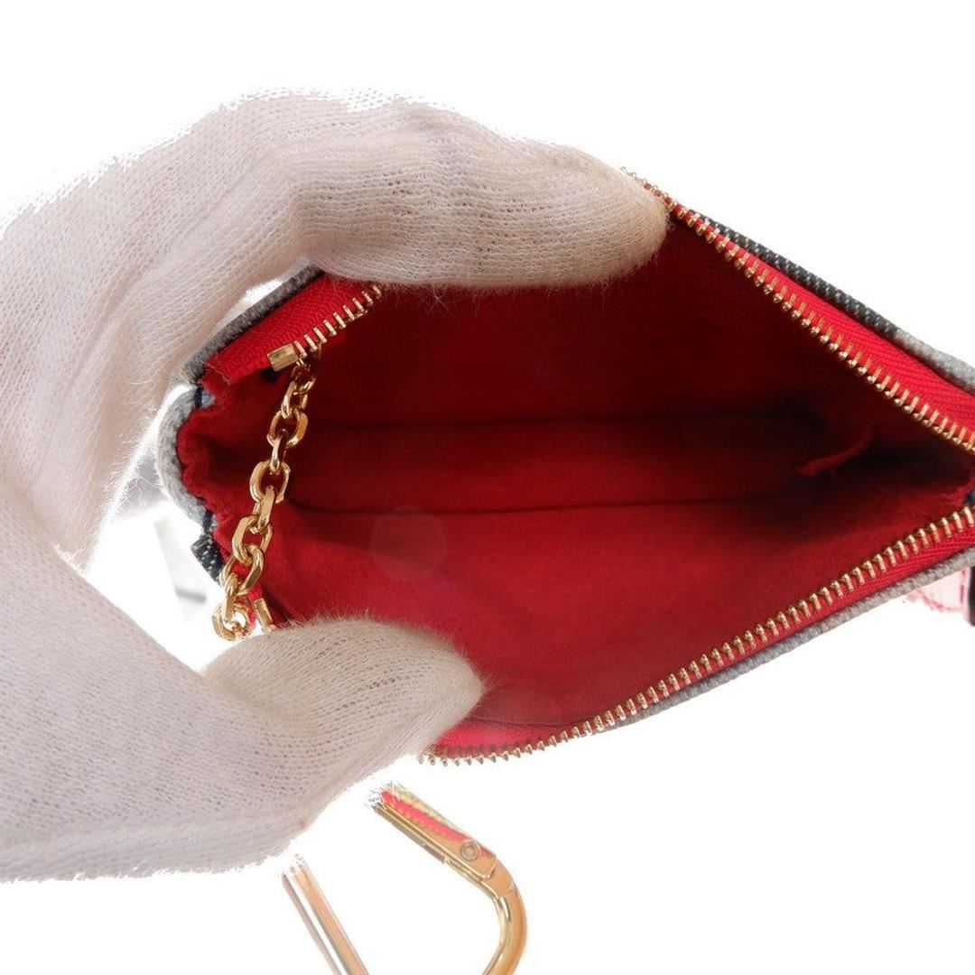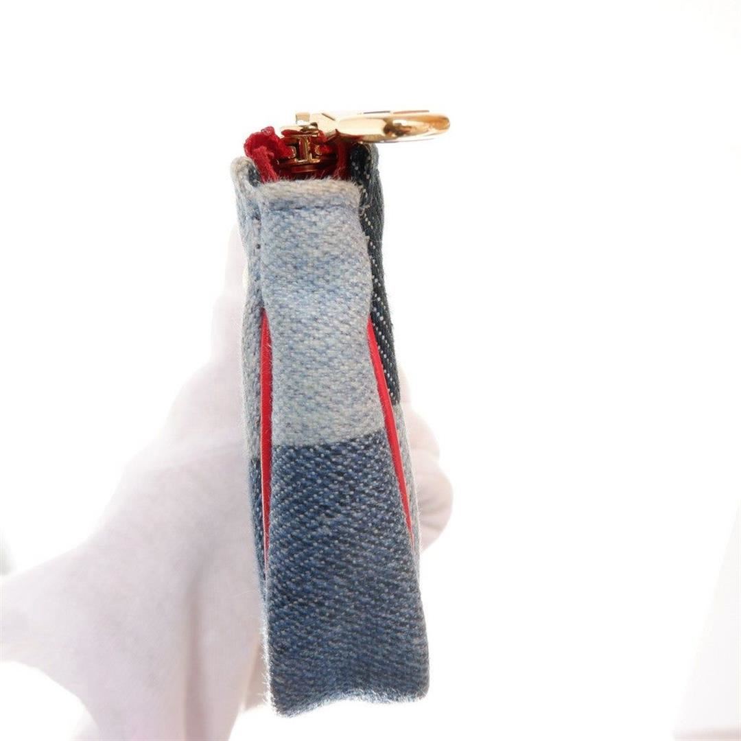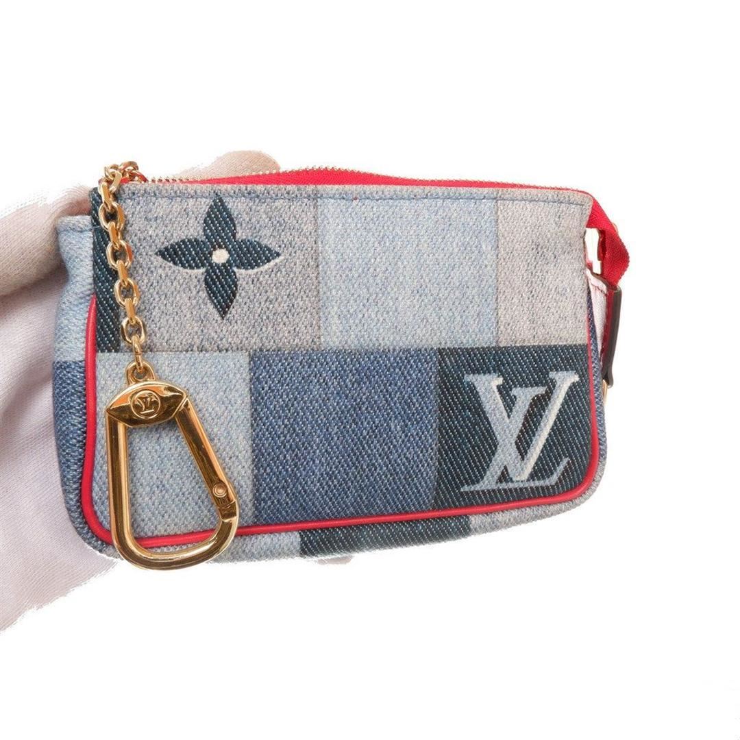 Blue monogram denim Louis Vuitton Micro Pochette pouch with zip closure, red Alcantara interior lining and gold-tone hardware.