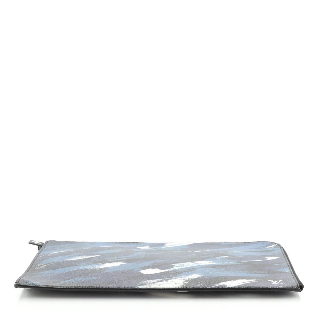 Louis Vuitton Blue Multicolor Camo Printed Canvas Leather Pochette Jour Limited Edition GM Pouch Condition Details: Wear and peeling on base and opening corners, light wear in interior, scratches on hardware. Measurements: Height 9.5", Width 13", De