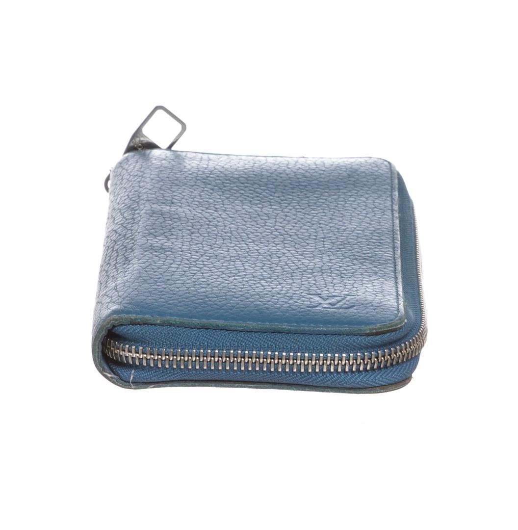 Blue Taurillon leather Vertical Zippy Wallet with silver-tone hardware, tonal lining, three interior compartments; one with zip closure, 10 card slots and zip closure at side.