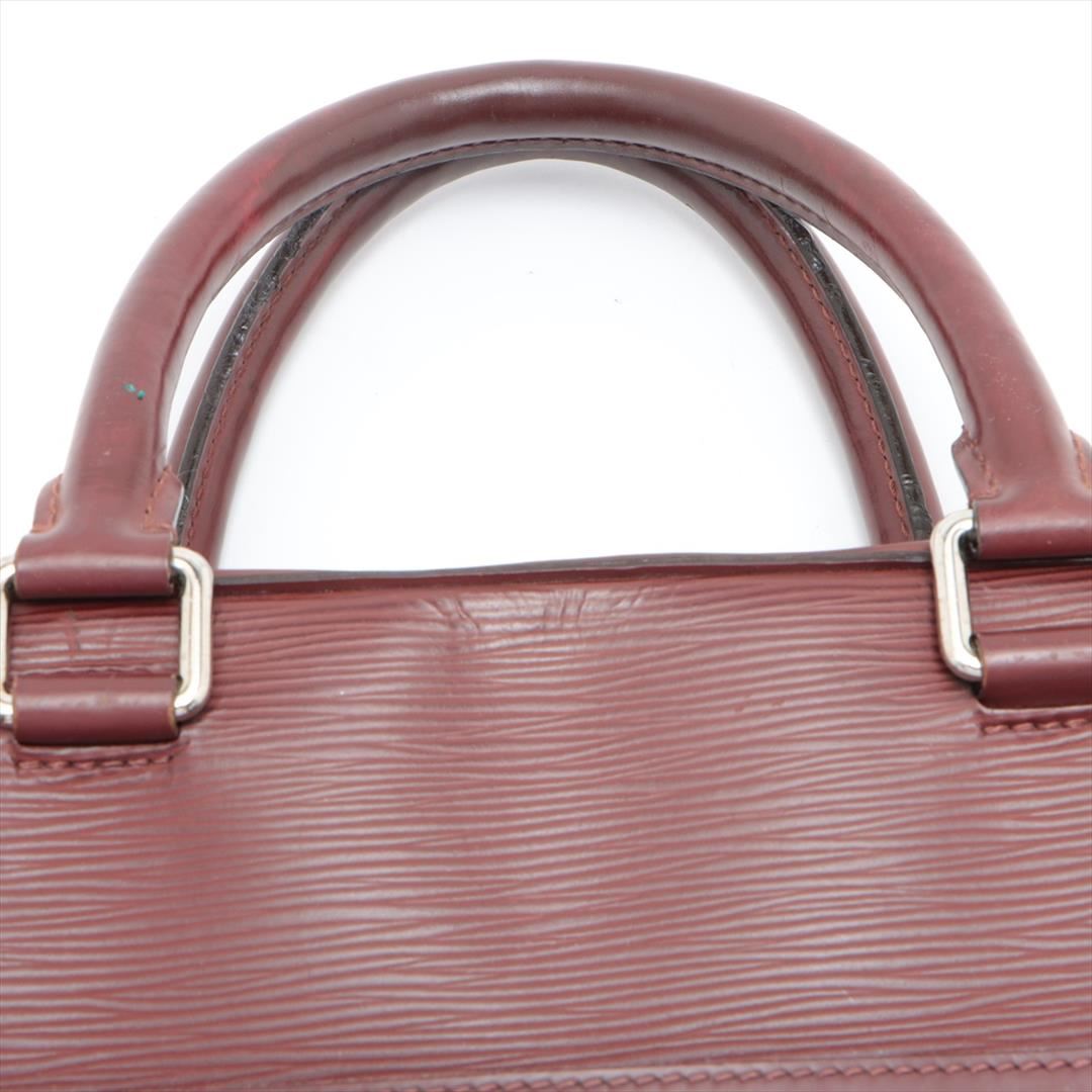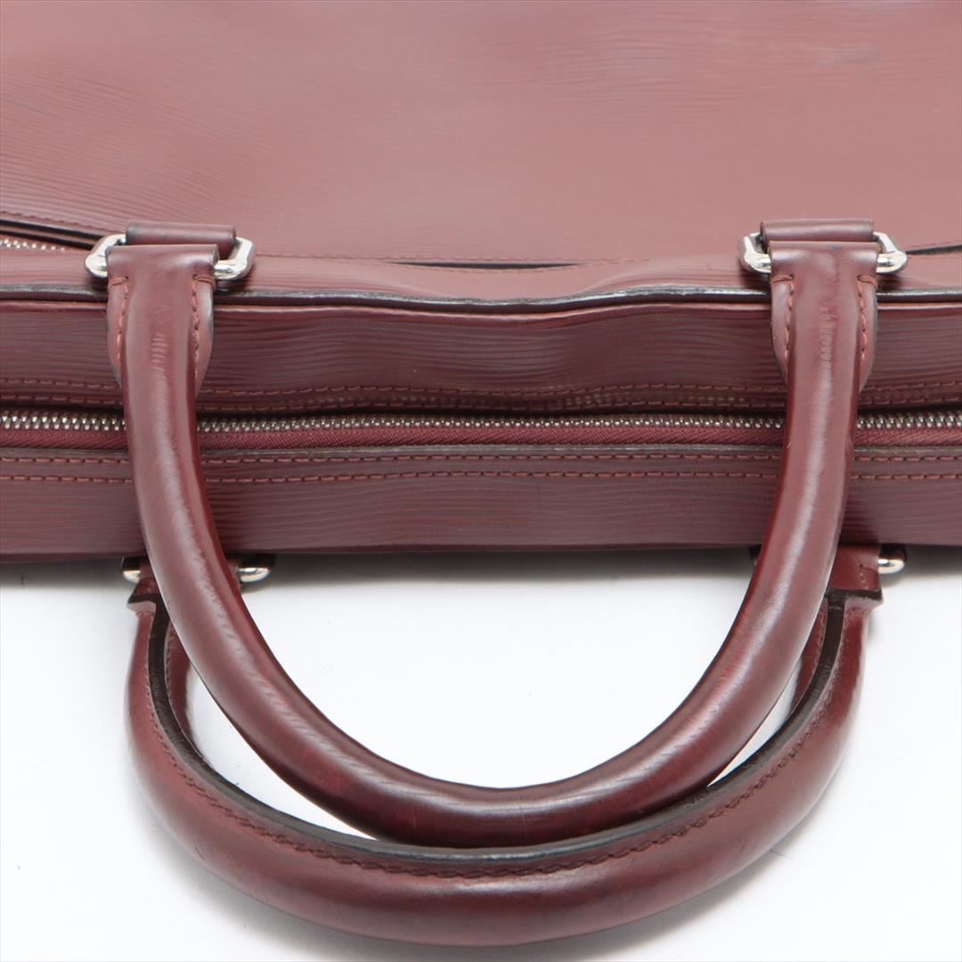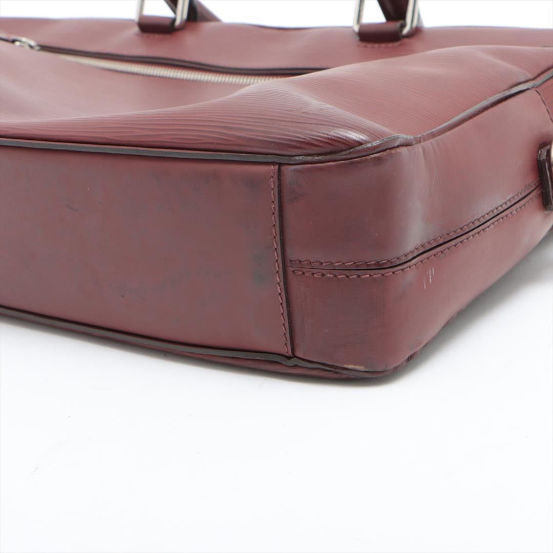 One Louis Vuitton Bordeaux Epi Leather Porte Documents Business Briefcase. Item is sold AS-IS. All available information is listed in the description and shown in the photo. Men's Bordeaux Epi leather Louis Vuitton Porte Documents Business with silver-tone hardware, dual rolled top handles, trolley slit at front, zip pocket at tonal Alcantara lining, six interior wall pockets; one with zip closure, dual pen holsters and two-way zip closure at top. Height: 11.25" Width: 15" Depth: 3" Handle Drop: 5.5"
