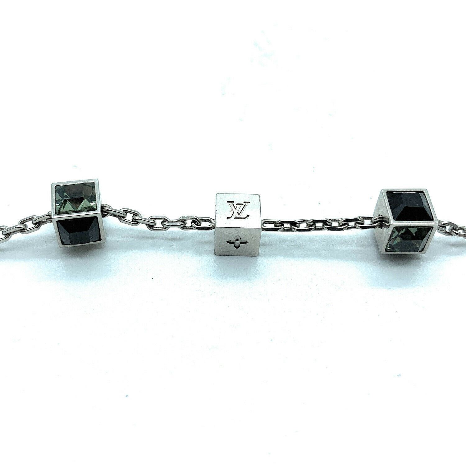 Featuring a gorgeous set of 3 cubes with monogram engravings and Swarovski crystals, the design has been finished with the signature LV logo and a lobster clasp.