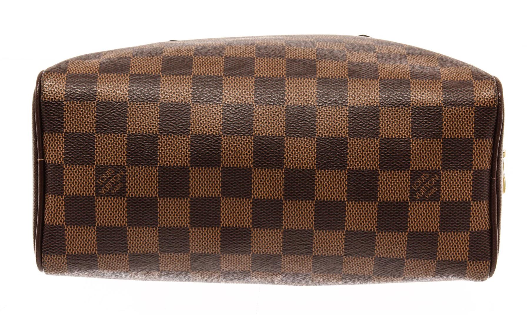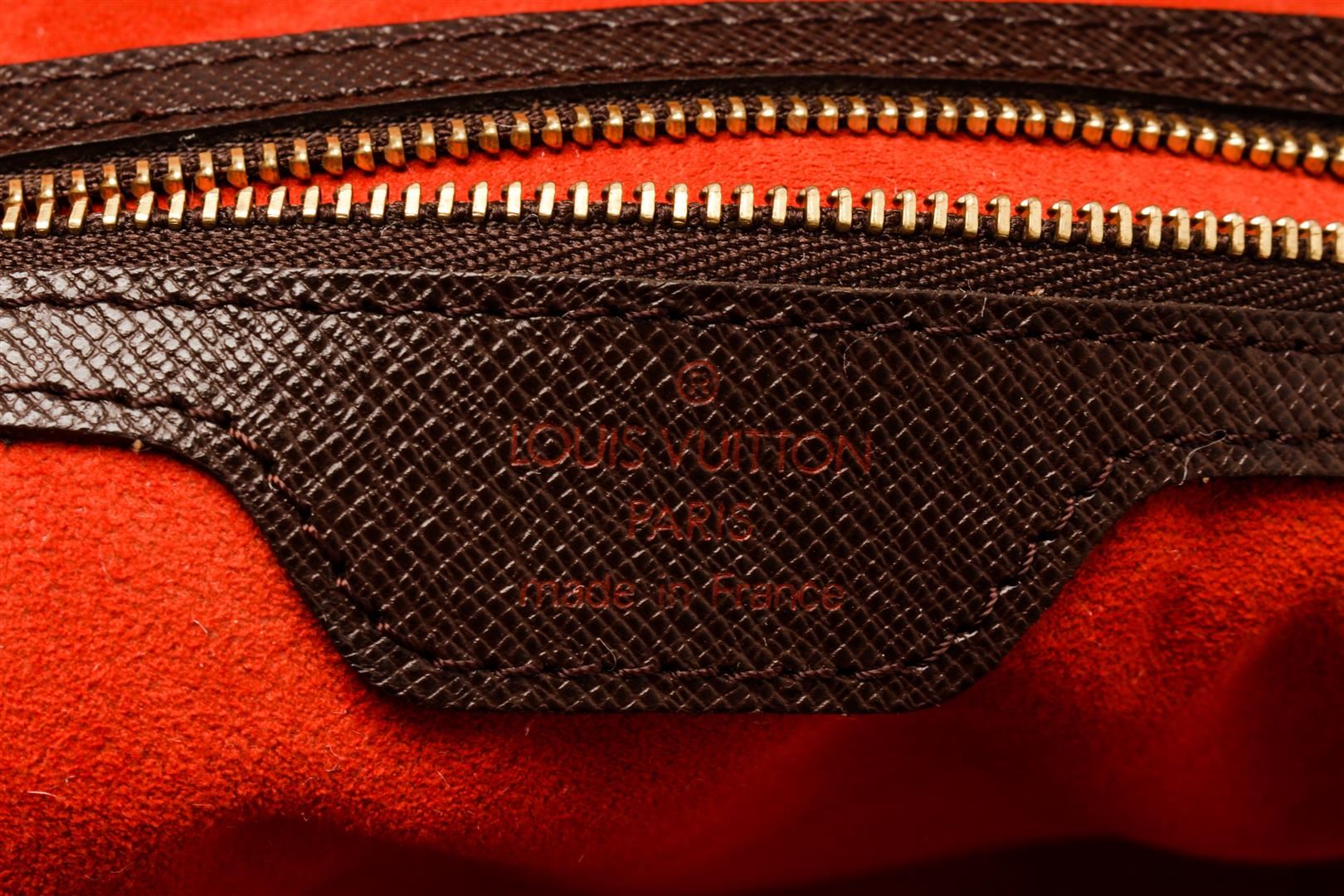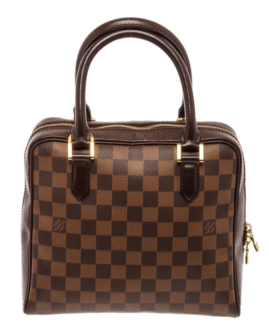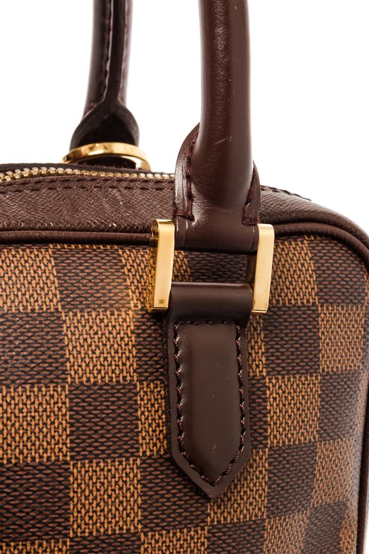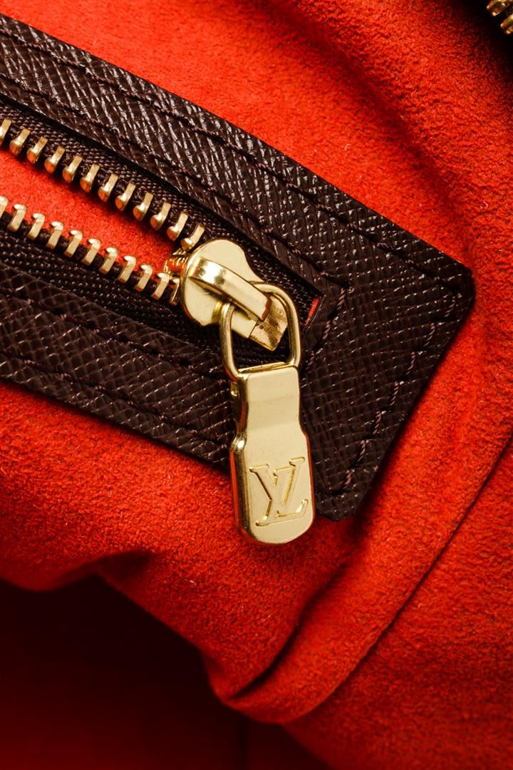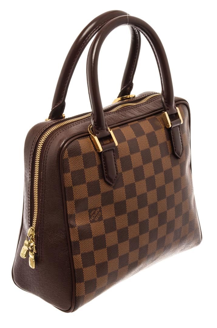 Louis Vuitton Brera Handbag. Brand: Louis Vuitton, Style: Brera, Type: Handbag, Exterior color: Damier Ebene, Exterior material: Coated Canvas, Interior color: Red, Interior material: Suede, Length: 9.5, Width: 4, Height: 9. Item is sold AS-IS and all inf