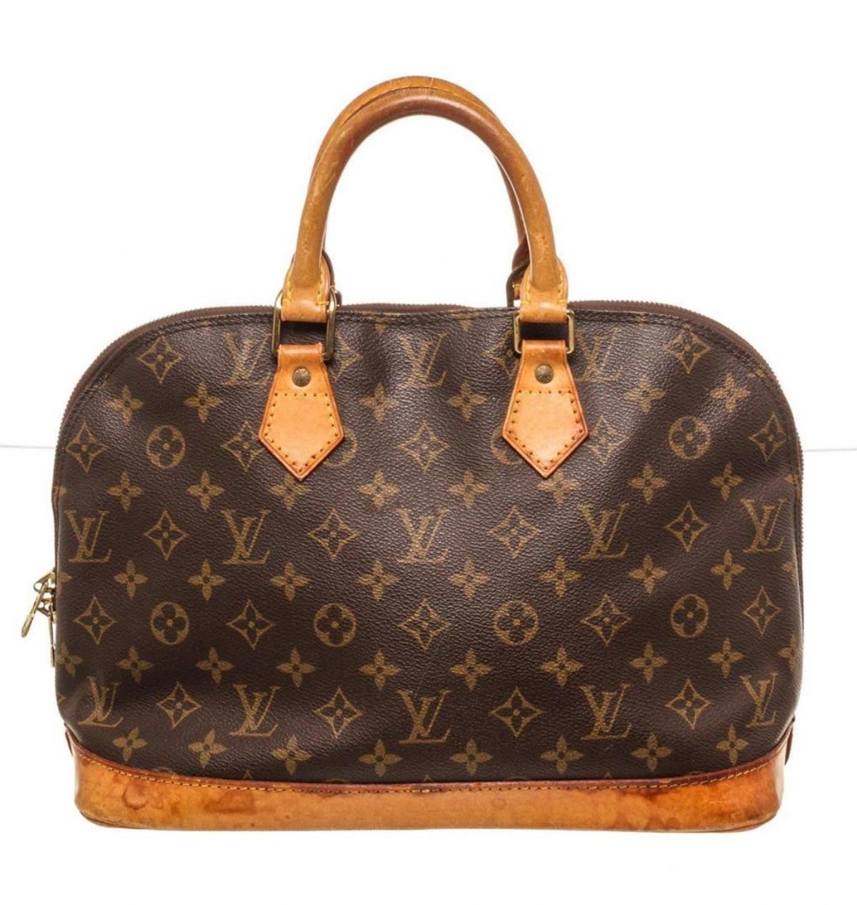 Louis Vuitton Brown Alma MM Satchel Bag. Louis Vuitton Brown Alma MM Satchel Bag with material monogram canvas, gold-tone hardware, trim tan vachetta leather, interior slip pockets, dual top handle and zipper closure.