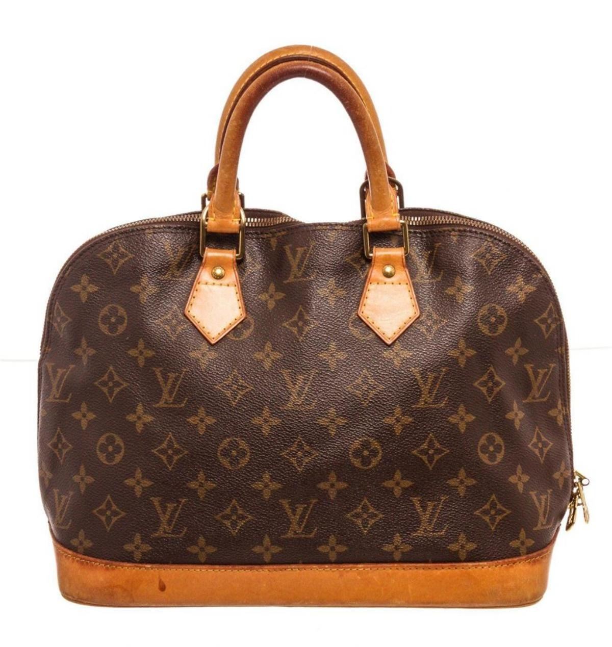 Louis Vuitton Brown Alma MM Satchel Bag. Louis Vuitton Brown Alma MM Satchel Bag with material monogram canvas, gold-tone hardware, trim tan vachetta leather, interior slip pockets, dual top handle and zipper closure. MEASUREMENTS: Length 6.25 in / 1
