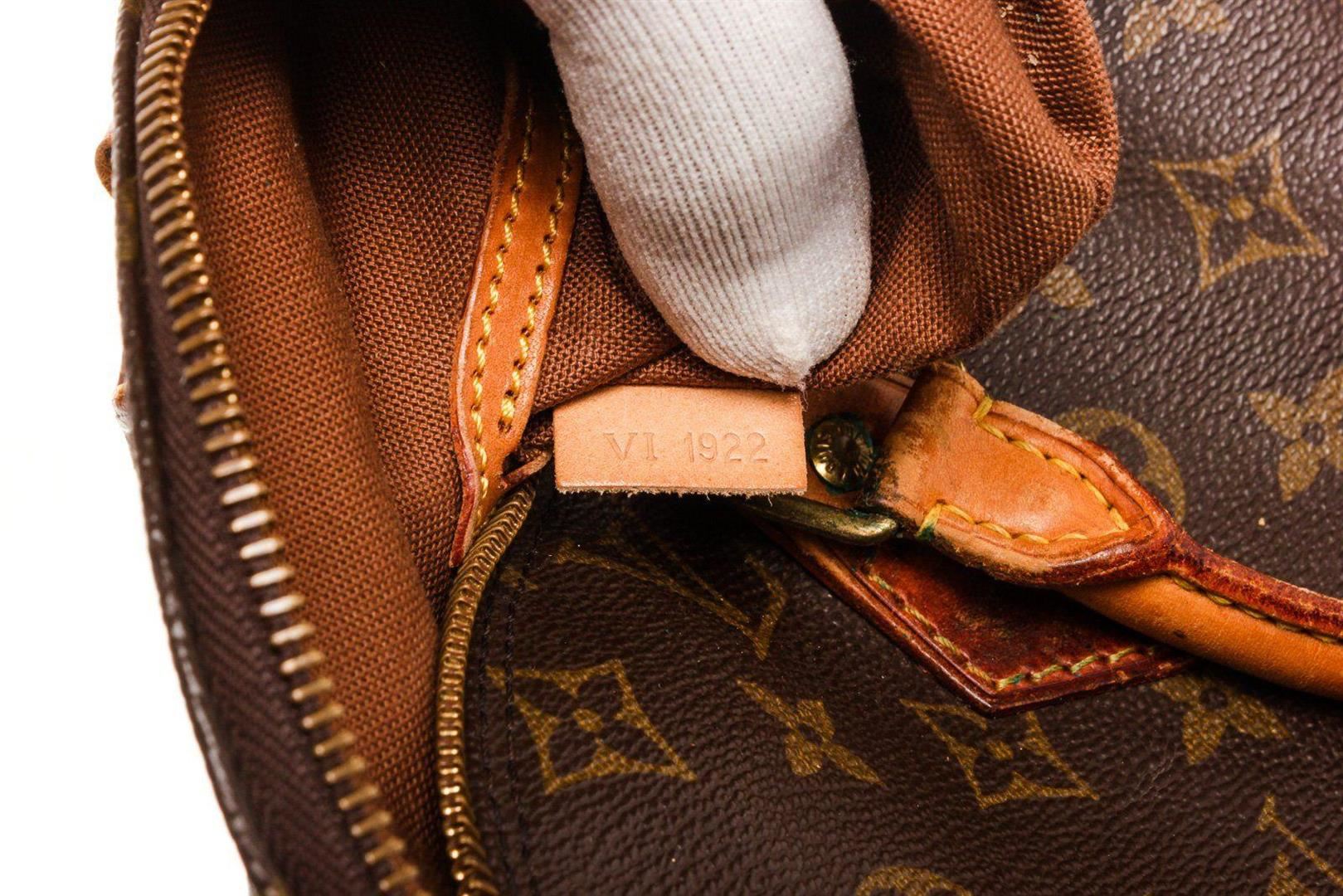 Louis Vuitton Brown Alma MM Satchel Bag with material monogram canvas, gold-tone hardware, trim tan vachetta leather, interior slip pockets, dual top handle and zipper closure.