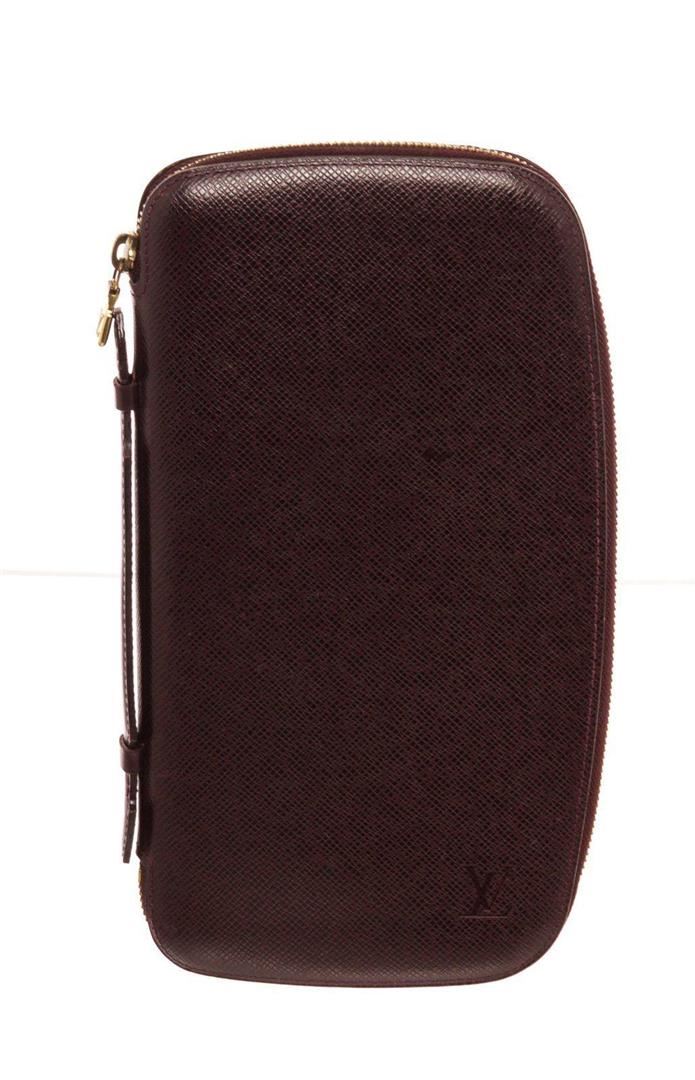 Louis Vuitton Brown Atoll Organizer Wallet with material leather, gold-tone hardware, trim tan vachetta, interior cardholder pocket and zipper closure. MEASUREMENTS: Length 5 in / 13 cm Width 10 in / 25 cm Height 1 in / 3 cm Condition: Pre-Owned Good overall, please see photographs for detail.