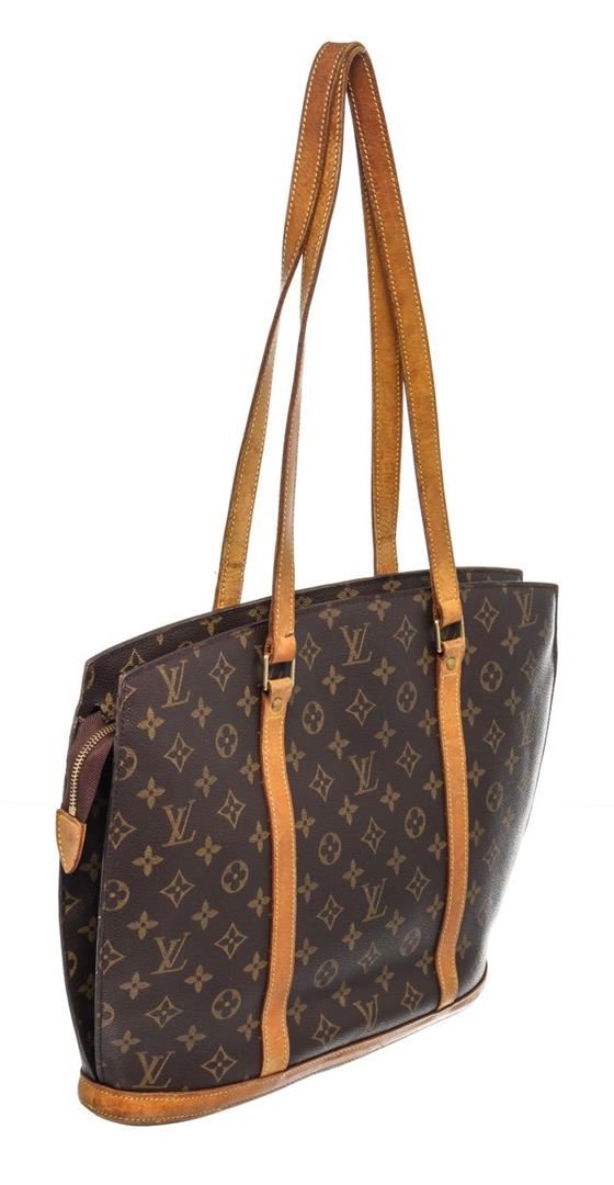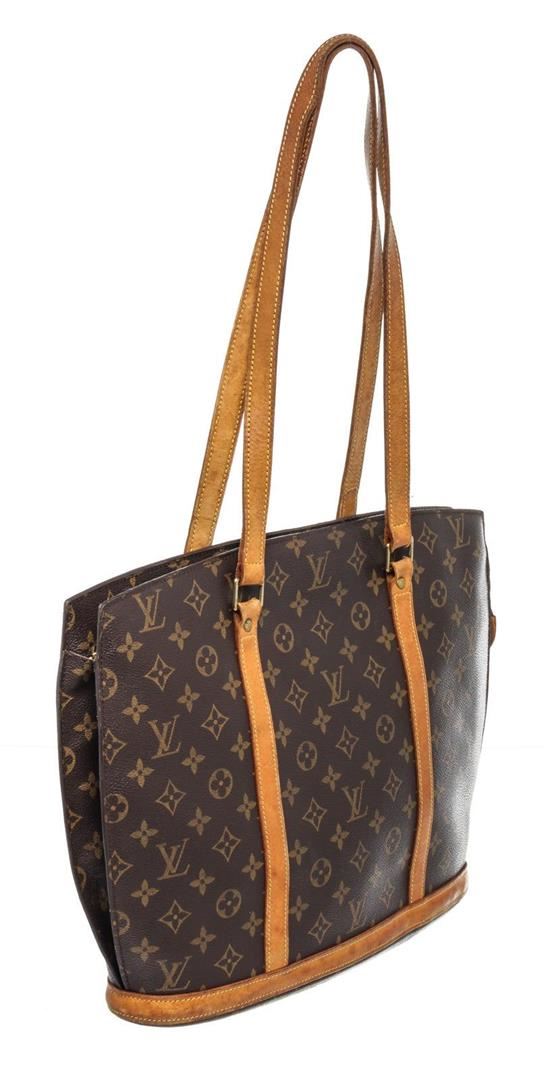 Louis Vuitton Brown Babylone Totes Bag with monogram canvas, gold-tone hardware, trim tan vachetta leather, interior zip pocket, shoulder strap and zipper closure.