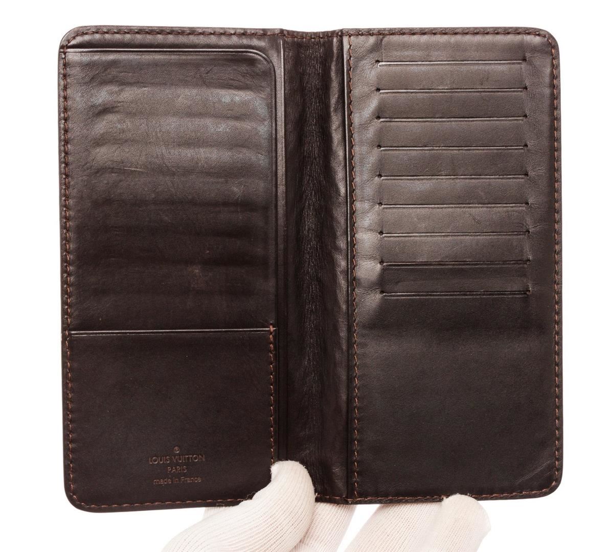 Louis Vuitton Brown Canvas Long Card Wallet with Brown and tan Monogram coated canvas Louis Vuitton long wallet with tonal stitching, cinnamon leather lining, card slots and bifold closure.