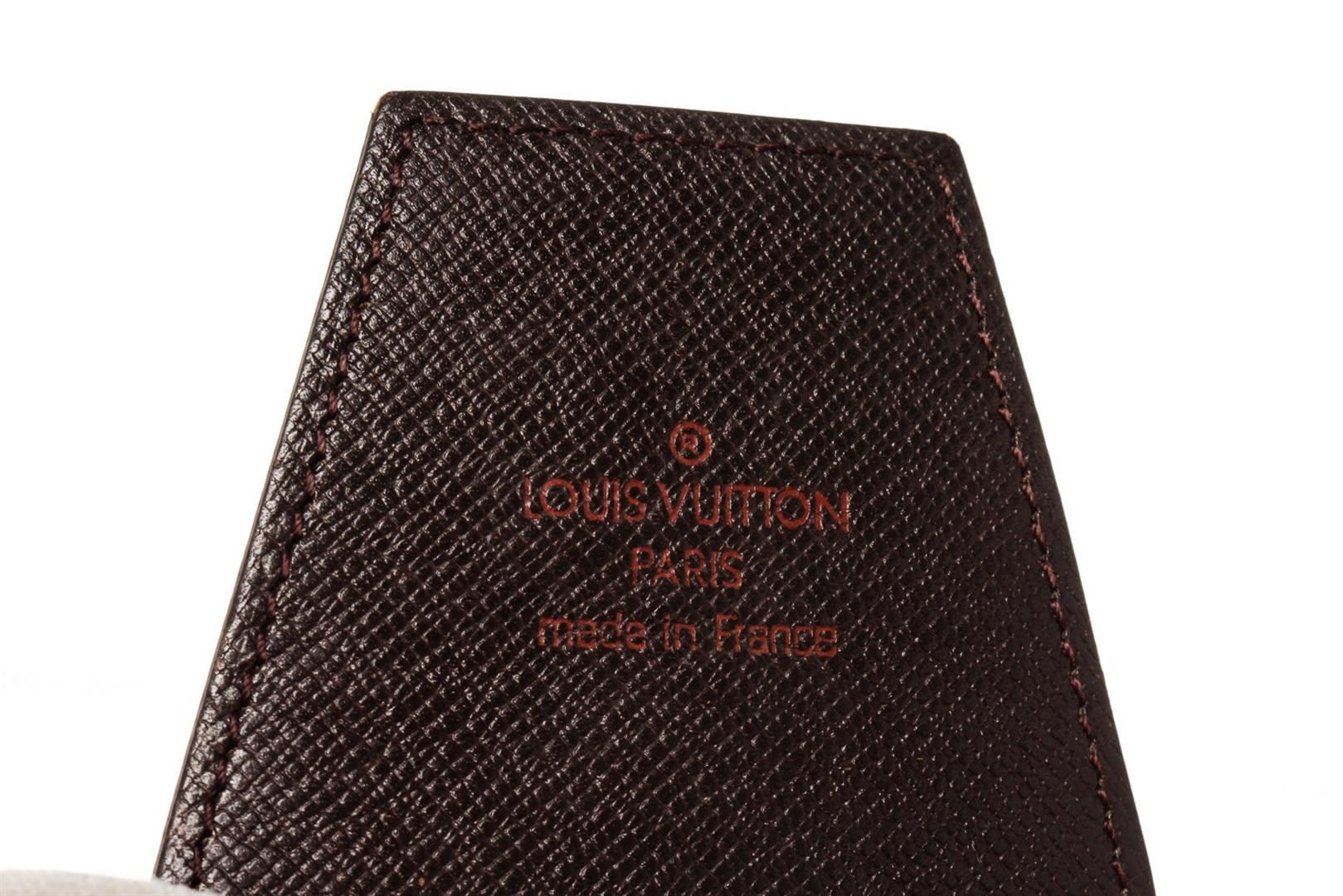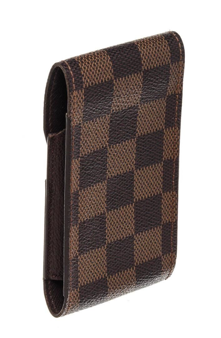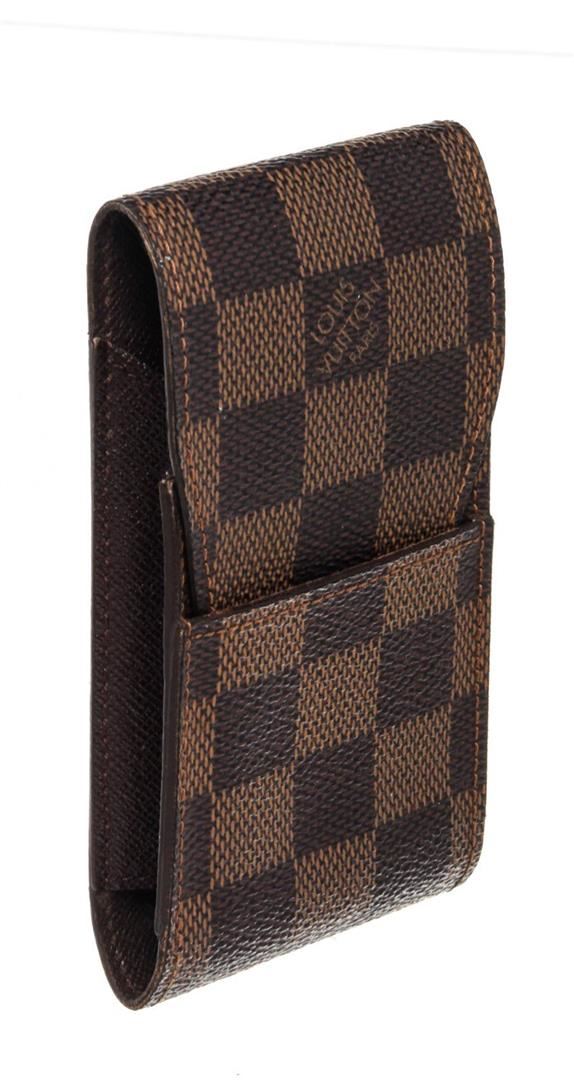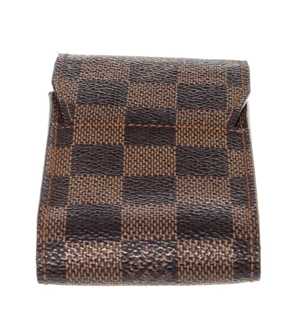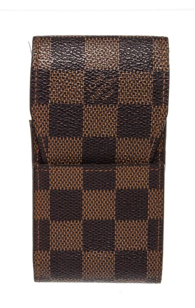Louis Vuitton Brown Damier Canvas Cigarette Case Clutch with damier canvas, gold-tone hardware, trim tan vachetta leather, interior slip pocket and snap closure.