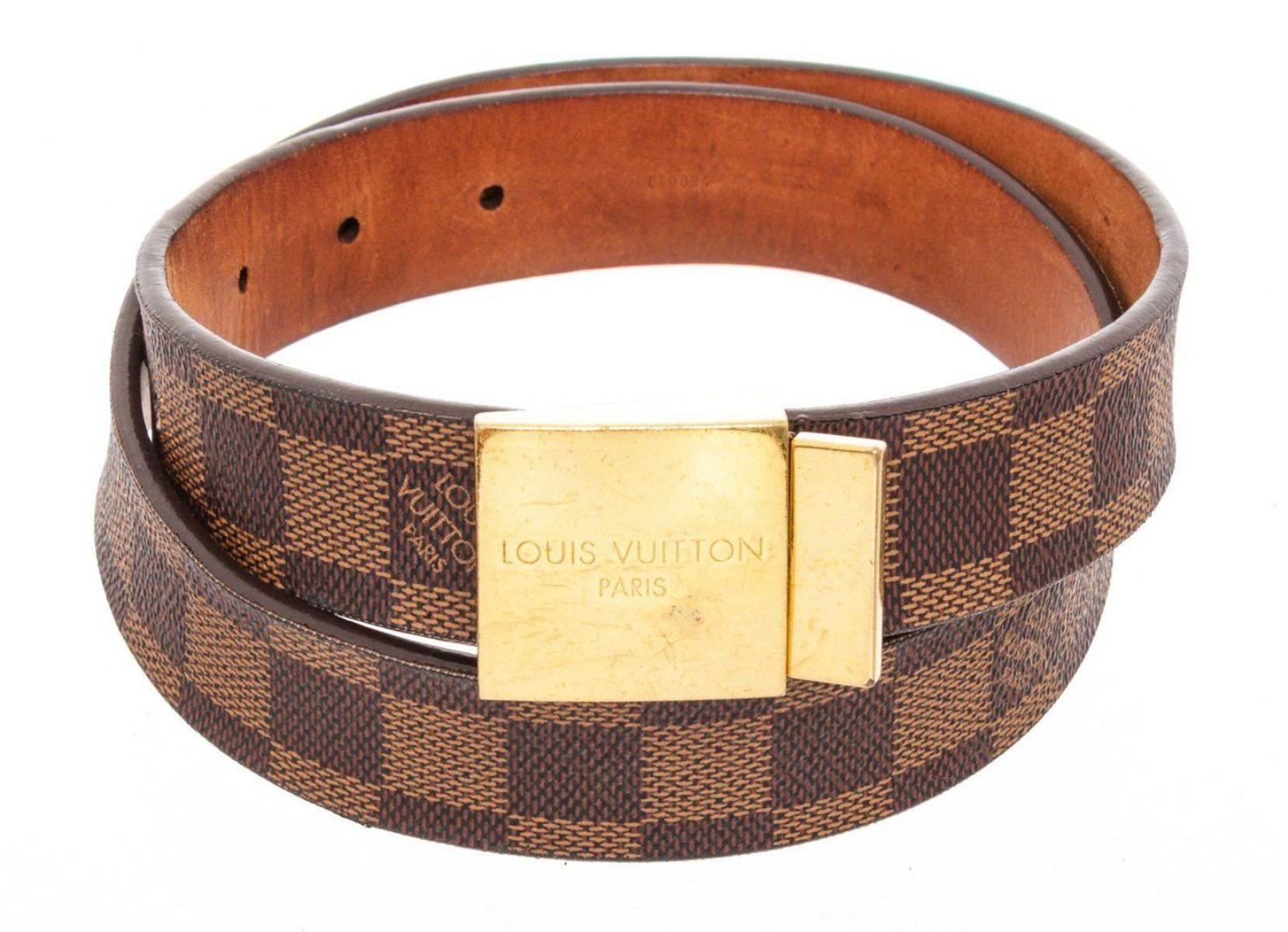 Louis Vuitton Brown Damier Ebene Belt with gold-tone hardware, clasp closure.       Measurements:  Length: 1.5 in / 4 cm  Width: 41 in / 104 cm  CONDITION: Pre-Owned Good overall, please see photographs for detail.