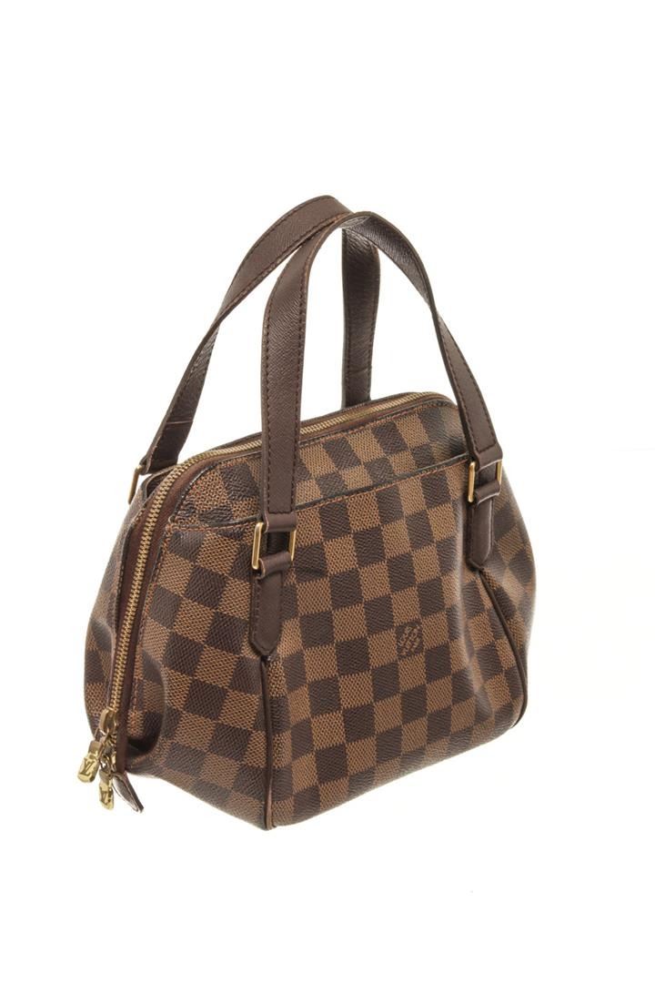 One Louis Vuitton Brown Damier Ebene Canvas Belem Pm Top-Handle Bag. Item is sold AS-IS. All available information is listed in the description and shown in the photo. louis vuitton brown damier ebene canvas belem pm top-handle bag with gold-tone hardware, brown, leather trim, two rounded top handles, two-way zip fastening, main compartment slip pocket to the front slip pocket to the rear, zip closure. Depth 5.5 in, Handle 3.5 in, Height 7.1 in, Width 9.8 in / Depth 14 cm, Handle 9 cm, Height 18 cm, Width 25 cm