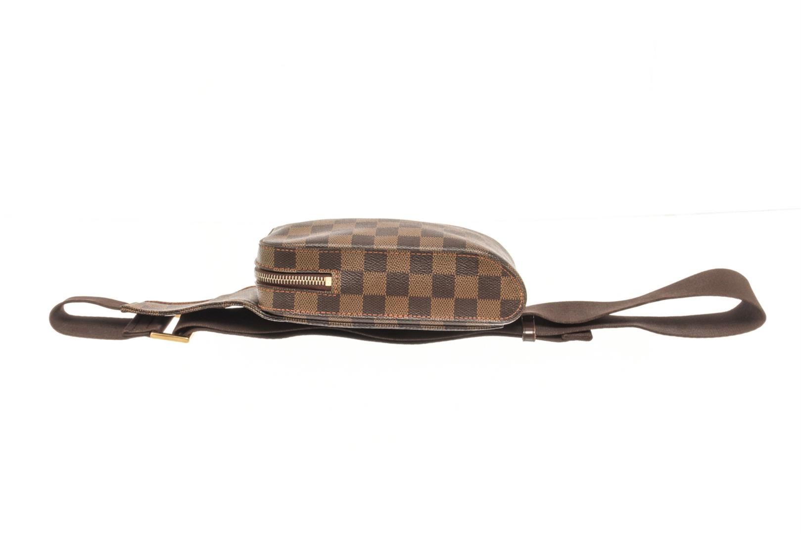 One Louis Vuitton Brown Damier Ebene Canvas Geronimos Shoulder Bag. Item is sold AS-IS. All available information is listed in the description and shown in the photo. louis vuitton brown damier ebene canvas geronimos shoulder bag with gold hardware, adjustable straps and zipper closure. W:4.72" x H:7.87" x D:1.96" Inches / W12cm x H20cm x D5cm