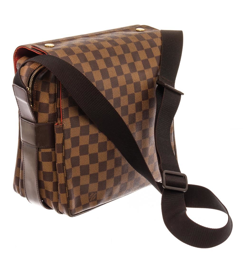 Louis Vuitton Brown Damier Ebene Canvas Naviglio Crossbody Bag. All available information is listed in the description and shown in the photos. Louis Vuitton Brown Damier Ebene Canvas Naviglio Crossbody Bag with the naviglio features, a damier canvas body, a flat strap, gold-tone hardware, a top flap with snap closure, a top zip closure, and an interior slip pocket. 9.4" L x 12.2" W x 4.7" D, / 23.87 x 30.98 x 11.93 Cm
