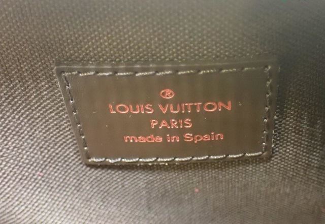 One Louis Vuitton Brown Damier Ebene Geronimos Waist Bag. Item is sold AS-IS. All available information is listed in the description and shown in the photo. Brown Damier Ebene coated canvas Louis Vuitton Geronimos waist bag with gold-tone hardware, single adjustable waist strap with buckle closure, single pocket at exterior with snap closure, brown canvas lining and zip around closure..