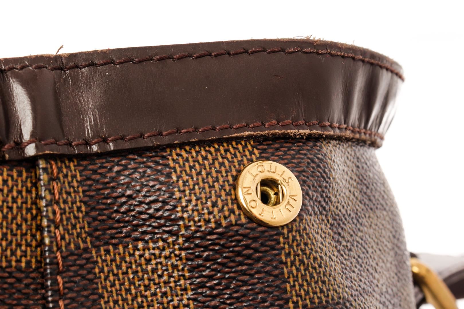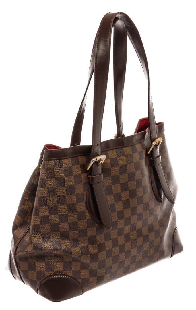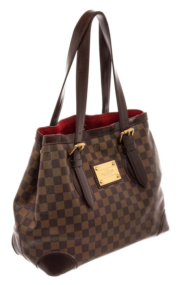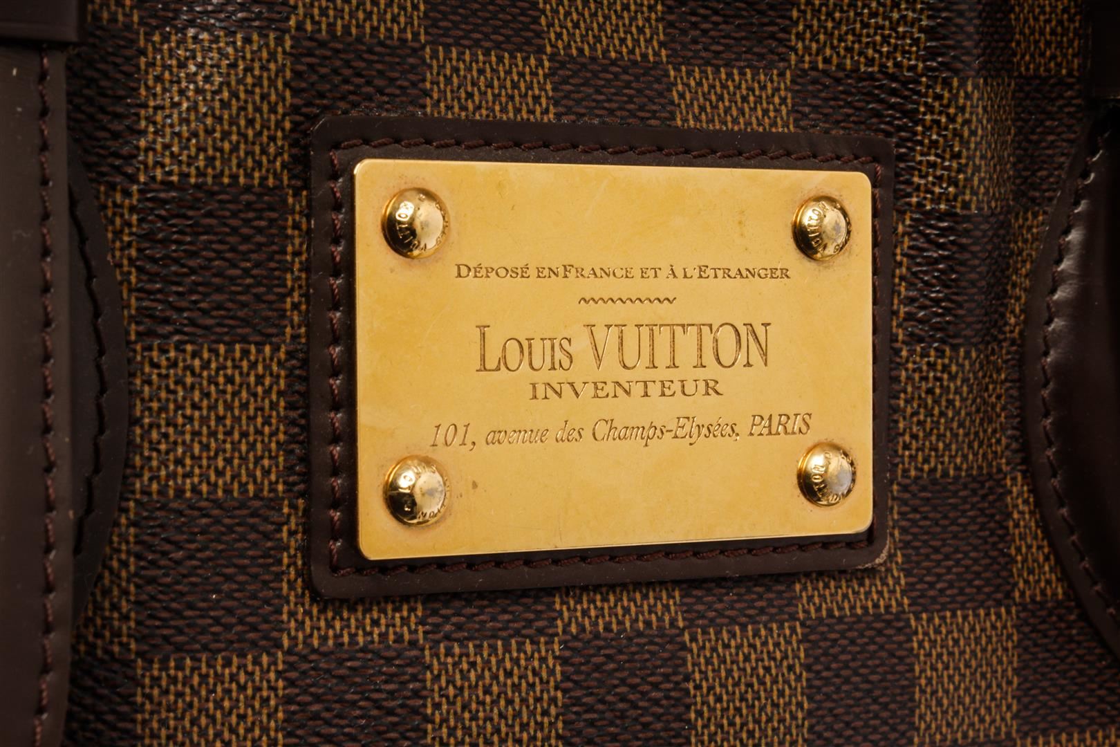 Louis Vuitton Brown Damier Ebene Leather Hampstead MM Shoulder Bag. All available information is listed in the description and shown in the photos. Louis Vuitton Brown Damier Ebene Leather Hampstead MM Shoulder Bag with damier ebene pattern, gold-tone hardware, leather trim, dual shoulder straps, leather trim embellishment, internal zip-fastening pocket, alcantara lining & three interior pockets, clasp closure at top. Height: 11" Width: 13.5" Depth: 6.5", Shoulder Strap Drop: 7" / 27.94 x 34.29 x 16.51 Cm