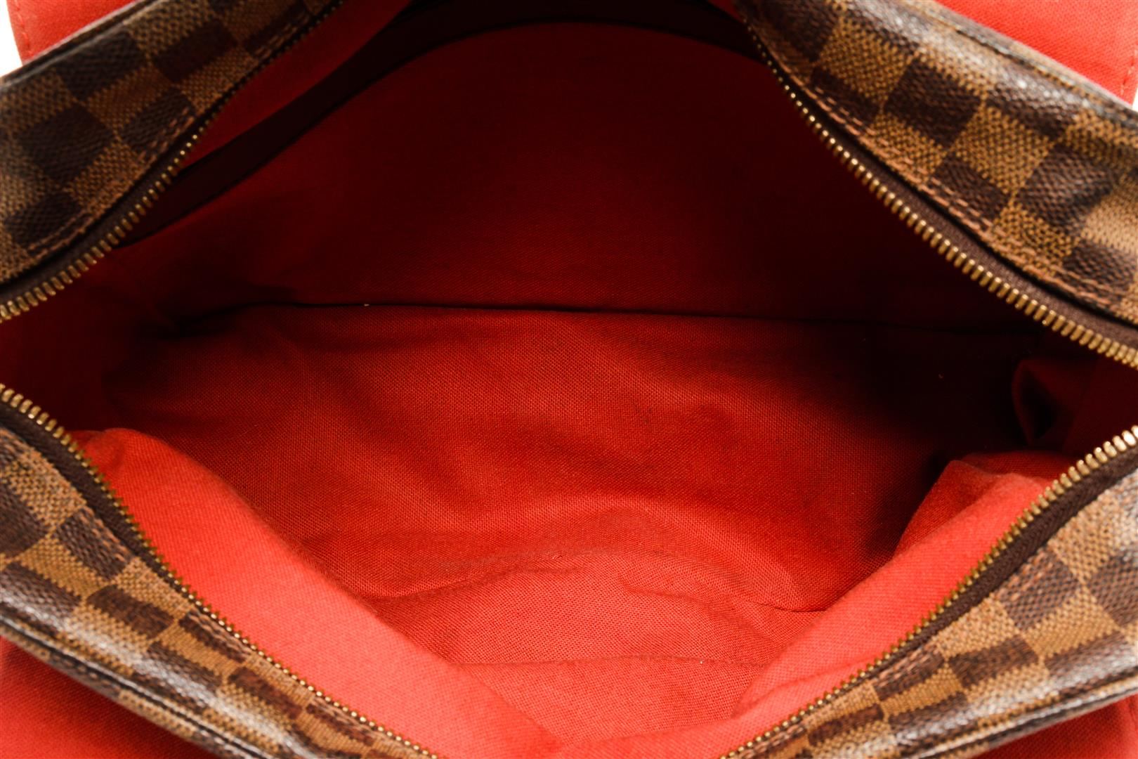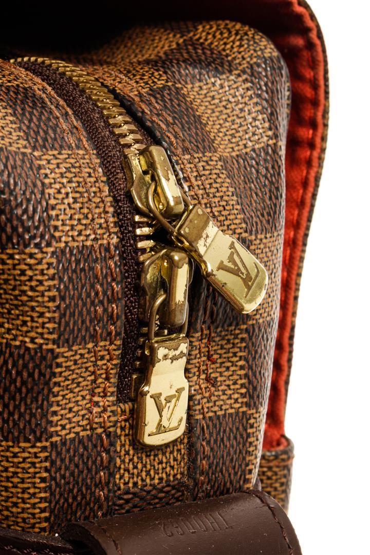 Louis Vuitton Brown Damier Ebene Naviglio Messenger Bag. All available information is listed in the description and shown in the photos. Louis Vuitton Brown Damier Ebene Naviglio Messenger Bag with damier ebene pattern, gold-tone hardware, single adjustable shoulder strap, grosgrain lining & single interior pocket, snap closure at top Height: 30" Width: 13.5" Depth: 5" Shoulder Strap Drop: 20"