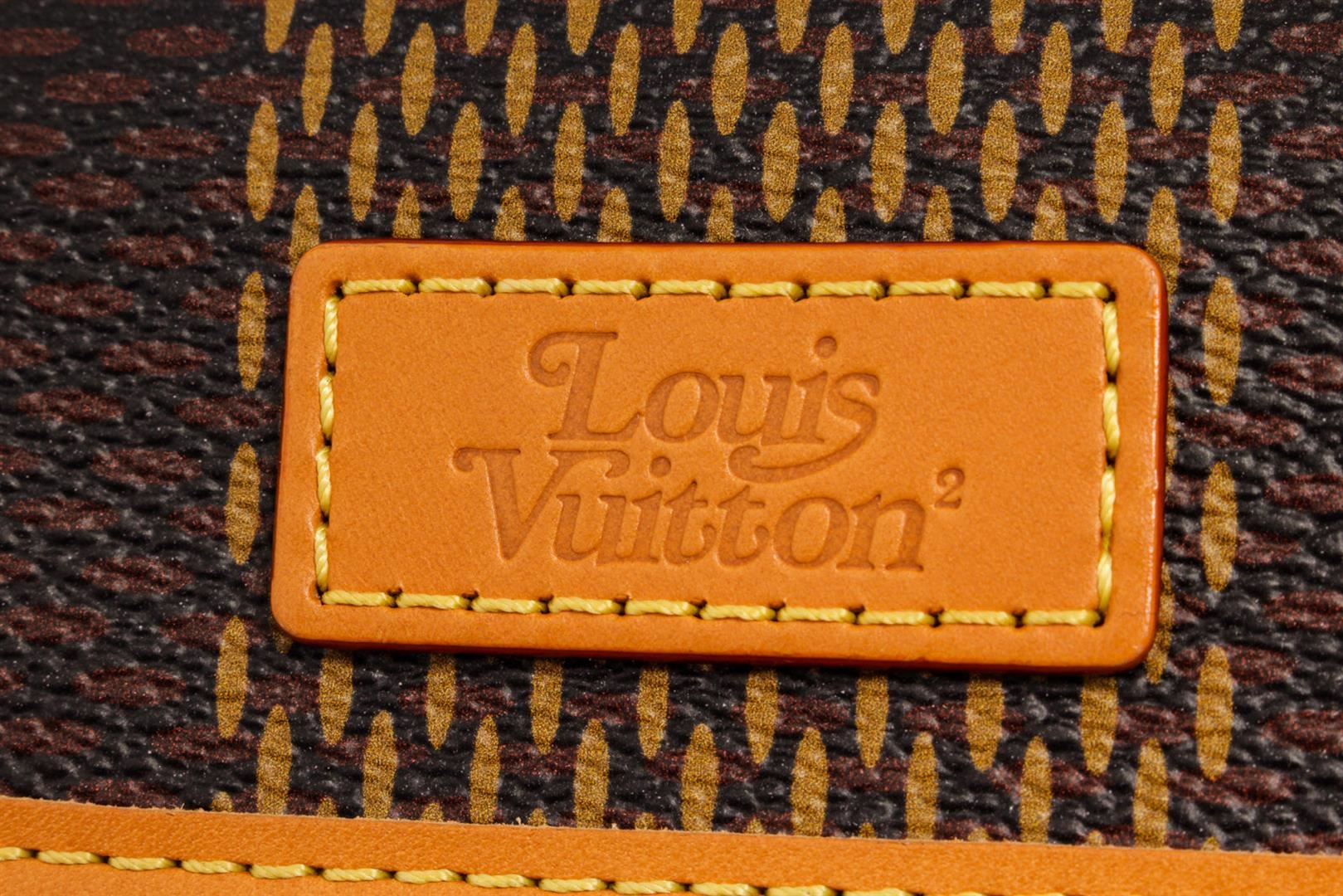 Louis Vuitton Brown Damier Giant Monogram Nigo Amazone Limited Edition Nano Messenger Bag. All available information is listed in the description and shown in the photos. Louis Vuitton Nigo Amazone Nano Messenger Bag features giant Damier Ebene coated canvas and drip brown Monogram coated canvas at the front pocket, brown textile lining, cowhide leather trim, matte-black hardware, adjustable shoulder strap and flap top over the open main compartment. Height 7", Width 5", Depth 3.5", Strap Drop 21-23"