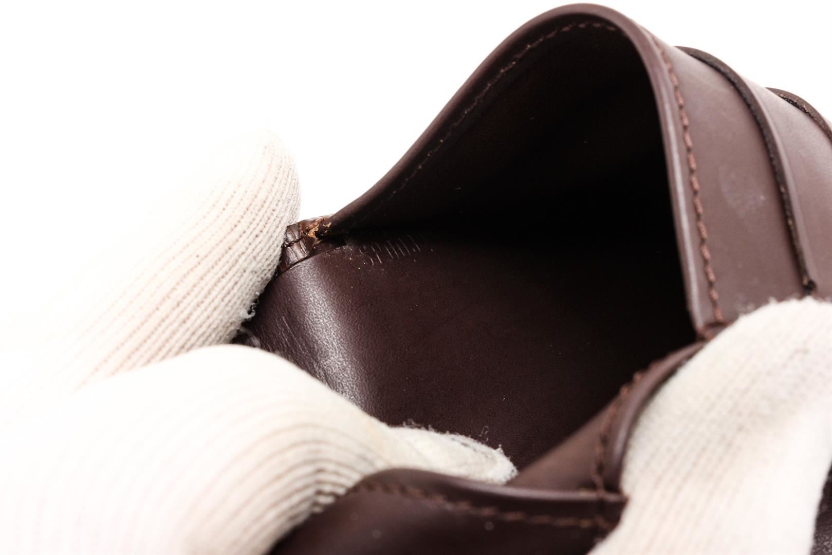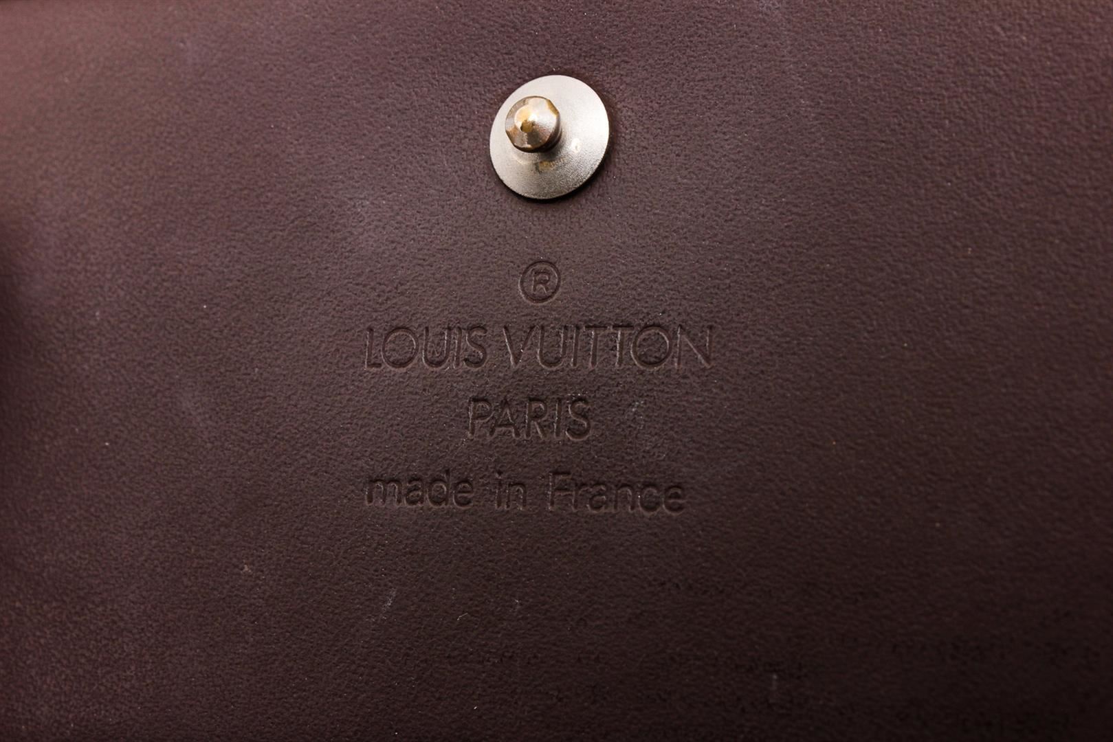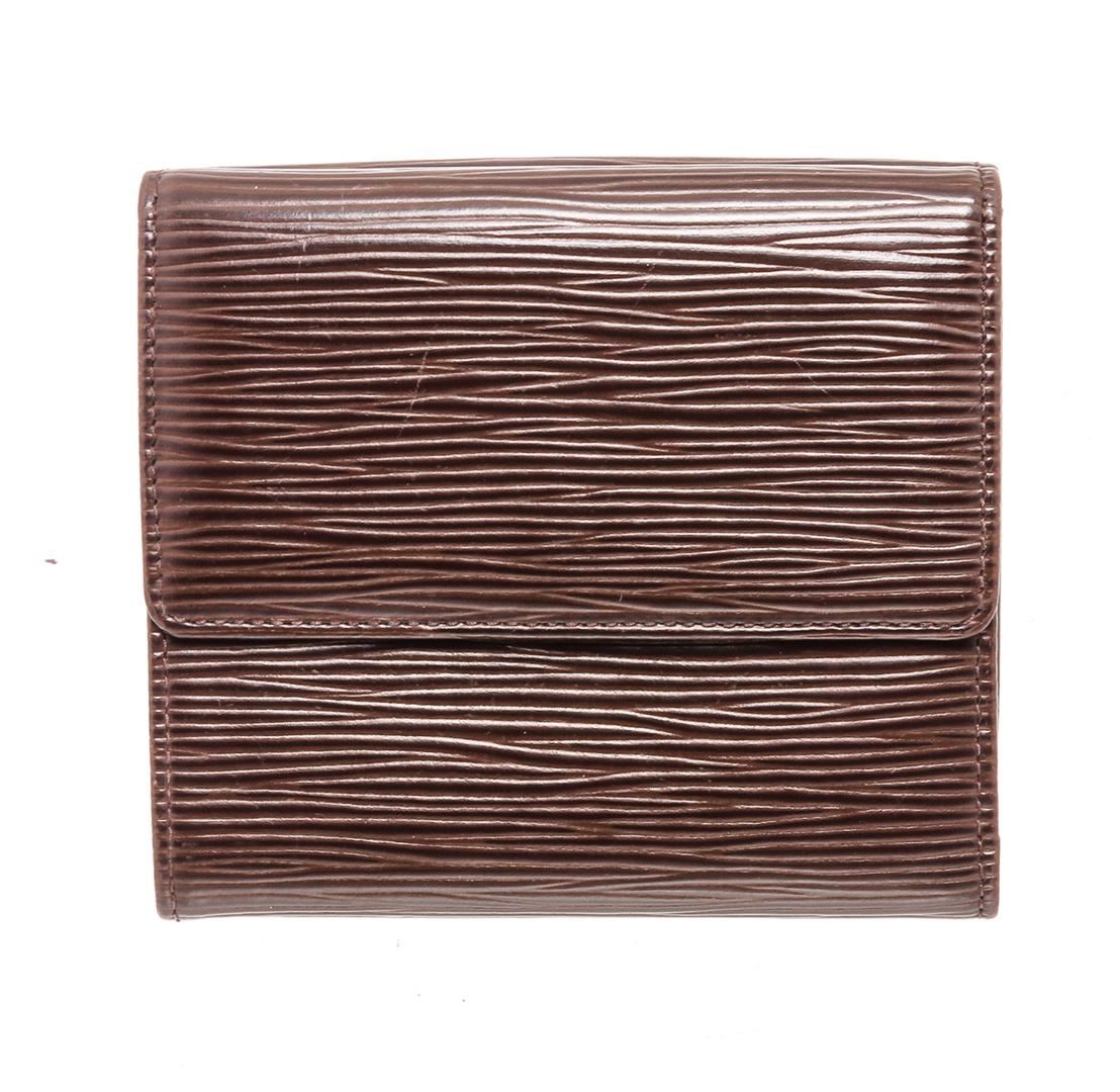 Brown Epi leather Louis Vuitton Elise compact wallet with brass hardware, embossed monogram accent at front face, single exterior pocket featuring snap closure, tonal leather lining, single bill compartment, six card slots and snap closure.