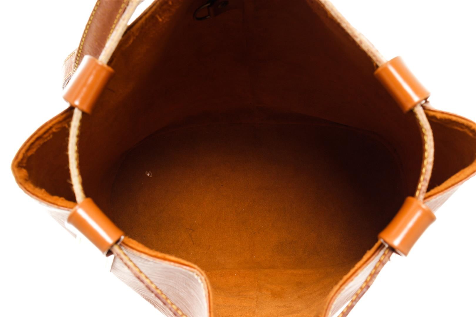 One Louis Vuitton Brown Epi Leather Randonnee PM Shoulder Bag. Item is sold AS-IS. All available information is listed in the description and shown in the photo. Louis Vuitton Brown Epi Leather Randonnee PM Shoulder Bag with suede lining, shoulder strap and gold tone hardware.