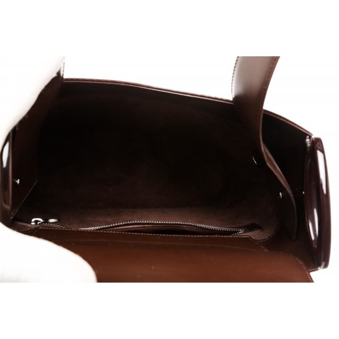 Overall magnetic button closure. Interior contains side zipper pocket.