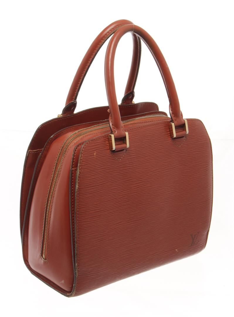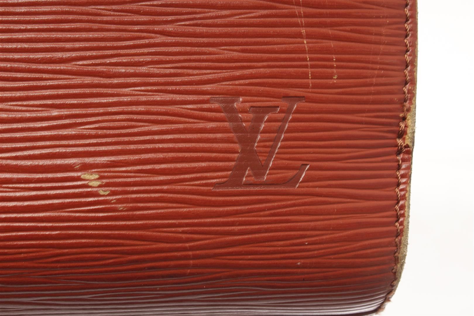 Louis Vuitton Brown Epi Pont Neuf Handbag. All available information is listed in the description and shown in the photos. Louis Vuitton Brown Epi Leather Pont Neuf Handbag with brown epi leather, rolled leather top handles, squared gold-tone brass links and hardware, and a wrap around zipper, This handbag opens to a brown alcantara microfiber interior with zipper and patch pockets. Height: 22.23 cm (8.75 in), Width: 24.13 cm (9.5 in), Depth: 10.8 cm (4.25 in)