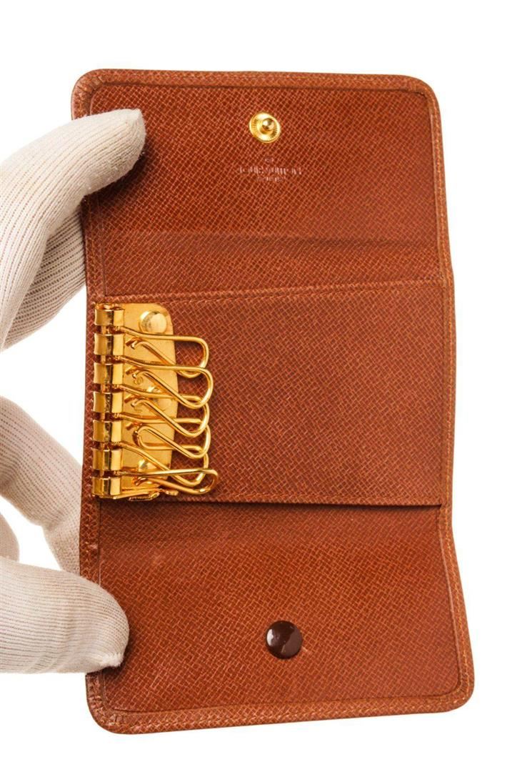 Louis Vuitton Brown Leather 6 key Holder Wallet with leather, gold-tone hardware, trim leather, interior key holder pocket and snap closure.