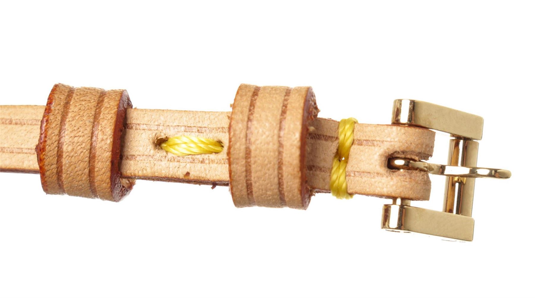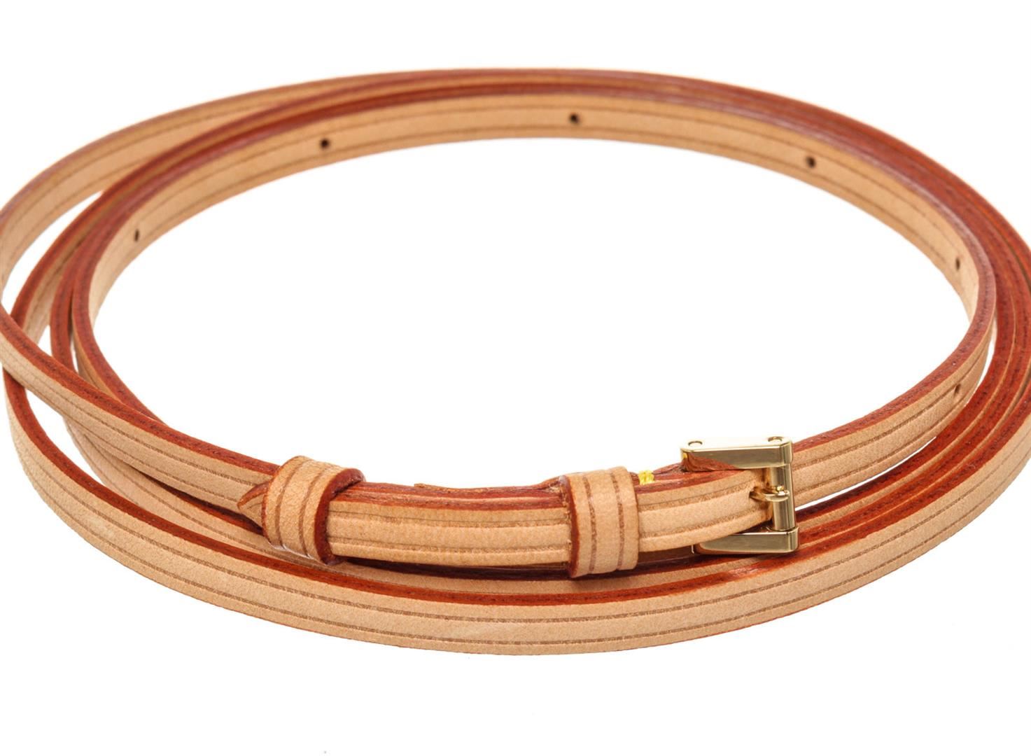Louis Vuitton Brown Leather Narrow Belt with gold-tone hardware.